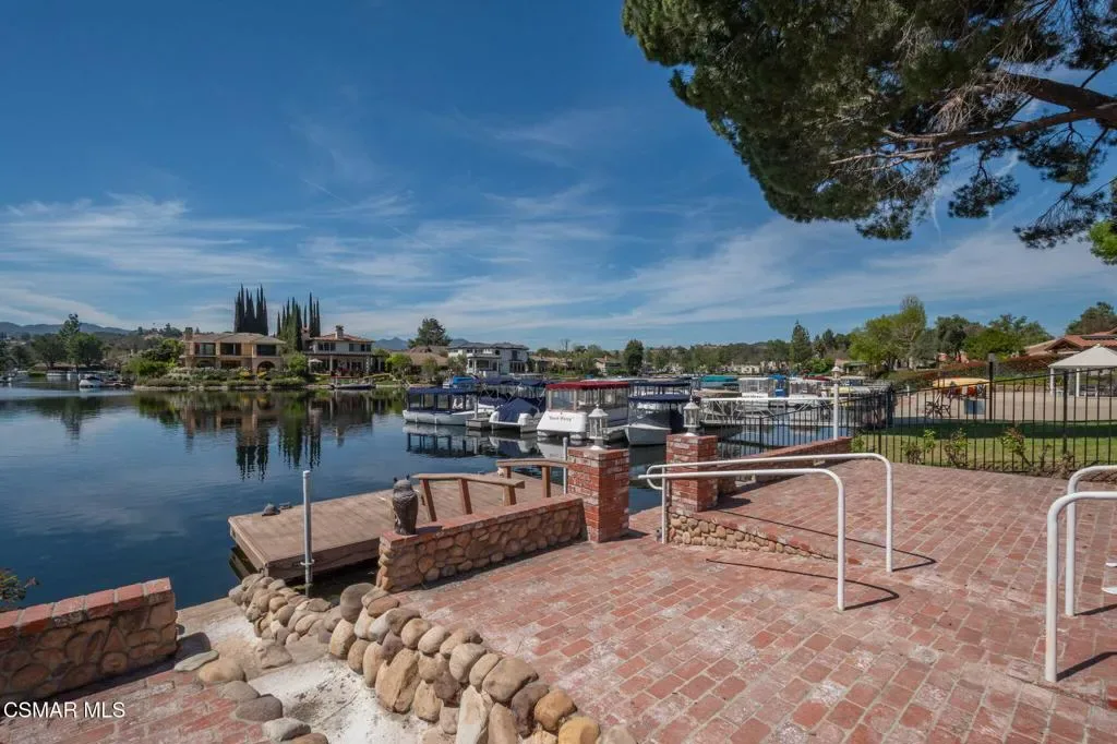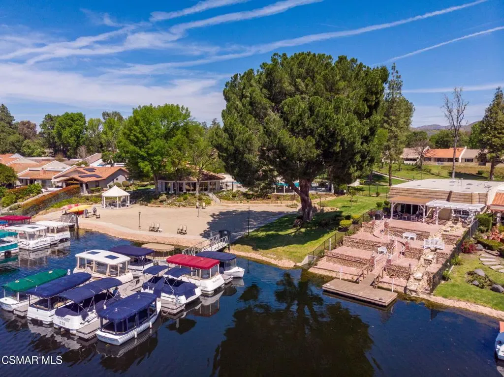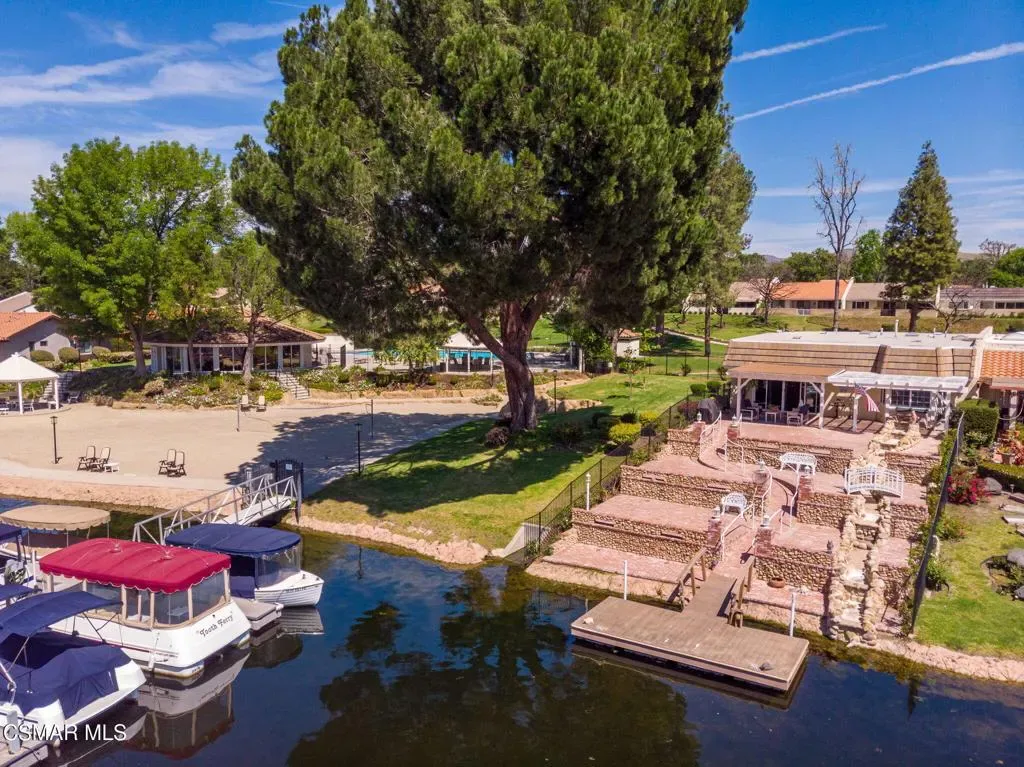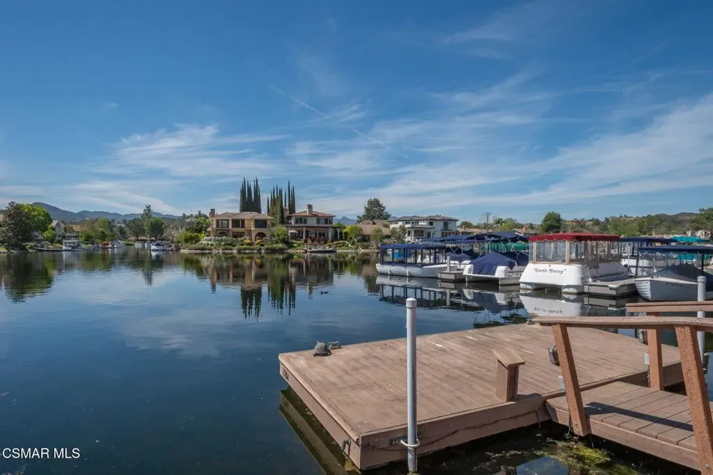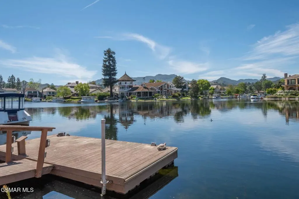 Welcome to the SUPREME Lakefront LOCATION in the Northshore tract with unrivaled panoramic views of the lake & Santa Monica Mountain! Step into effortless lakefront living in this beautifully remodeled home featuring a bright open concept floorplan and thoughtful finishes throughout this 3 Bedroom & 2.5 bath home. This home is almost 1800 square feet with one of the largest lots in Northshore. The living room, kitchen and primary suite features striking accent ceilings adding character and dimension! The kitchen features a large corian bar for eating and socializing. There is also ample counter workspace for cook prep & cabinet lighting. There is a powder room convenient for guests and inside laundry as well. This home combines convenience, flexibility and a great location. Spectacular outdoor living with a large private patio area to enjoy the incredible lakefront views and fabulous sunsets!! Enjoy boating on the lake with your own private dock!! Great end of cul de sac location next to pool, spa, clubhouse, beach etc.