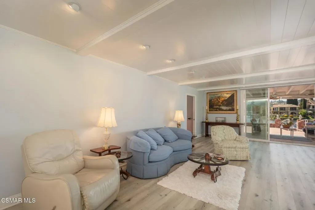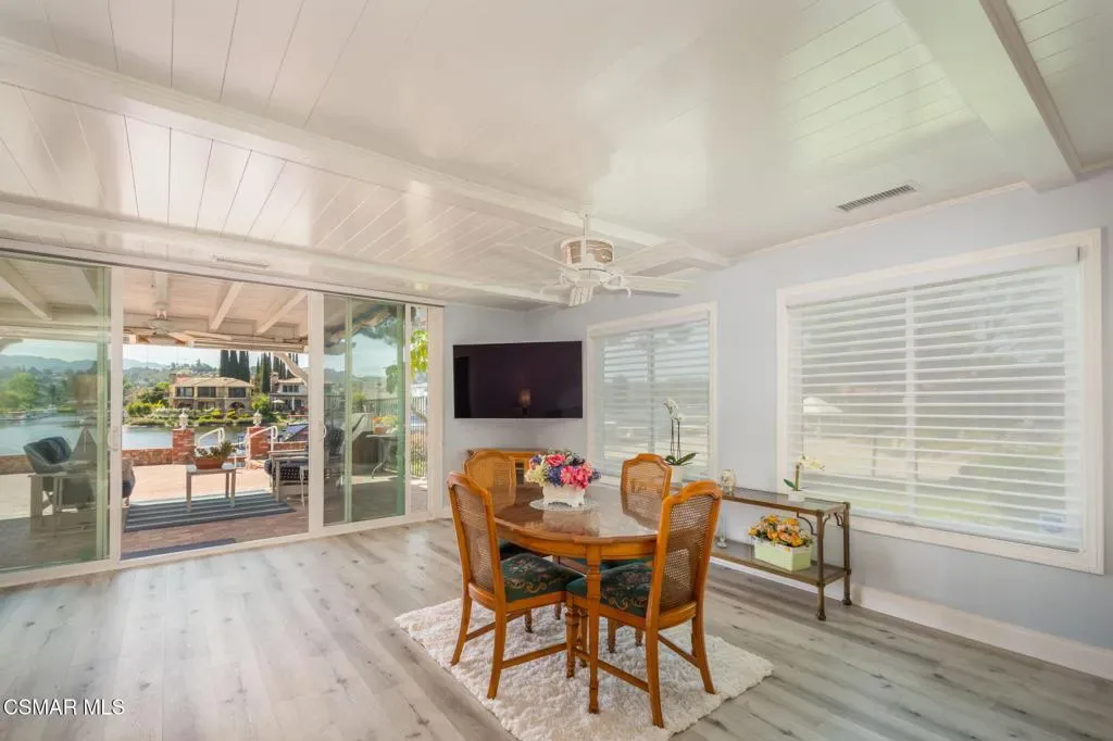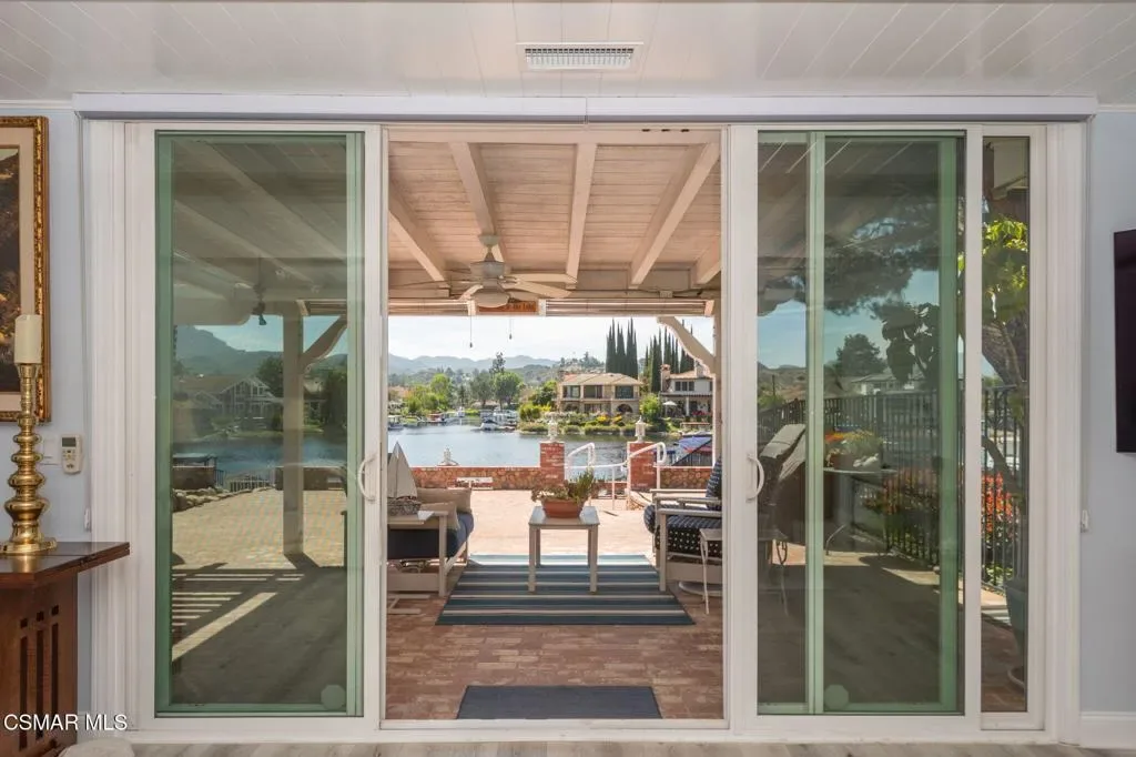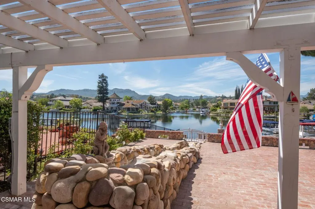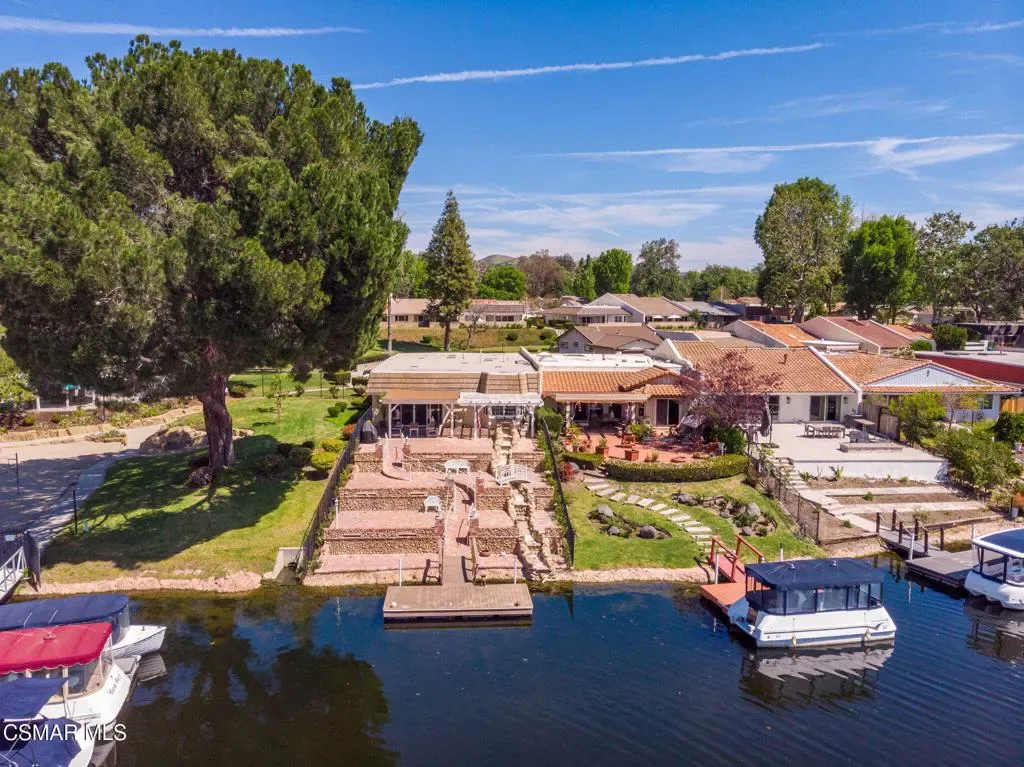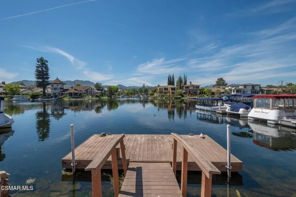 Welcome to the SUPREME Lakefront LOCATION in the Northshore tract with unrivaled panoramic views of the lake & Santa Monica Mountain! Step into effortless lakefront living in this beautifully remodeled home featuring a bright open concept floorplan and thoughtful finishes throughout this 3 Bedroom & 2.5 bath home. This home is almost 1800 square feet with one of the largest lots in Northshore. The living room, kitchen and primary suite features striking accent ceilings adding character and dimension! The kitchen features a large corian bar for eating and socializing. There is also ample counter workspace for cook prep & cabinet lighting. There is a powder room convenient for guests and inside laundry as well. This home combines convenience, flexibility and a great location. Spectacular outdoor living with a large private patio area to enjoy the incredible lakefront views and fabulous sunsets!! Enjoy boating on the lake with your own private dock!! Great end of cul de sac location next to pool, spa, clubhouse, beach etc.