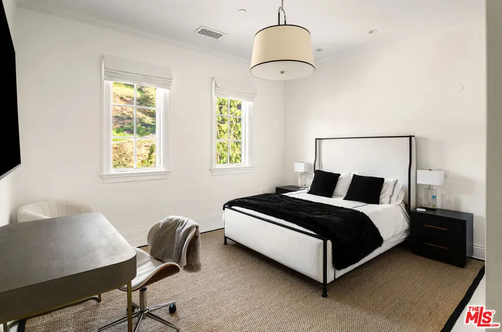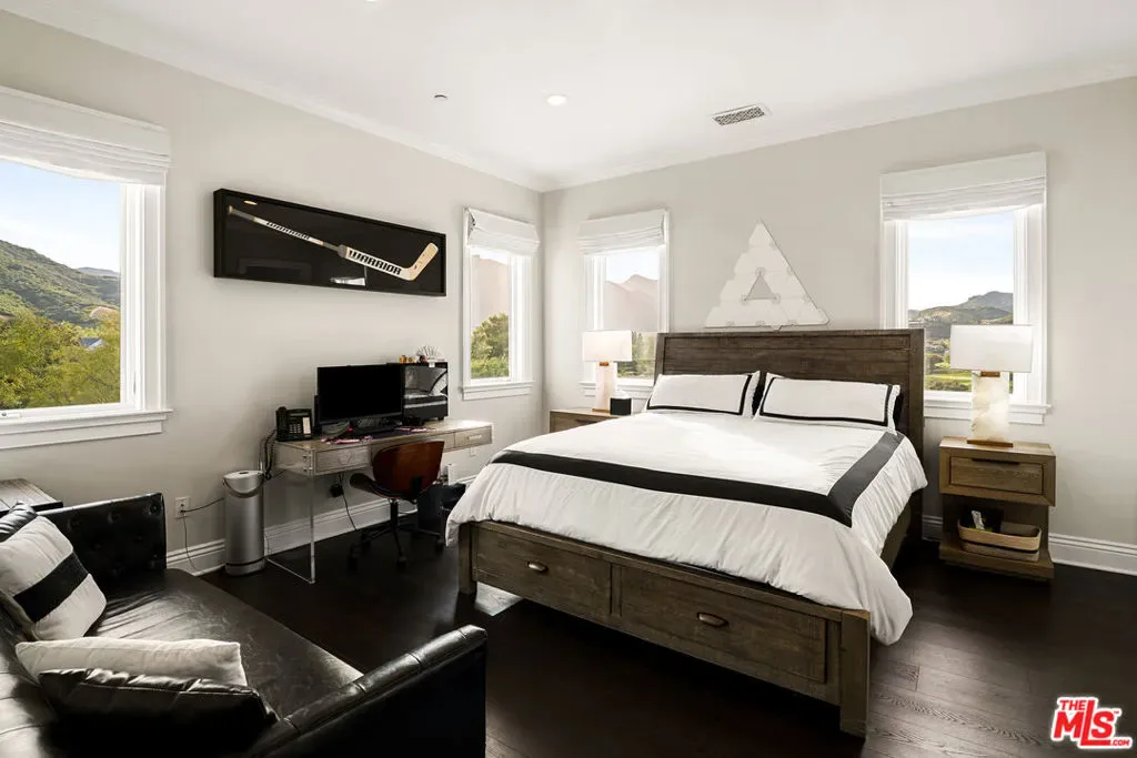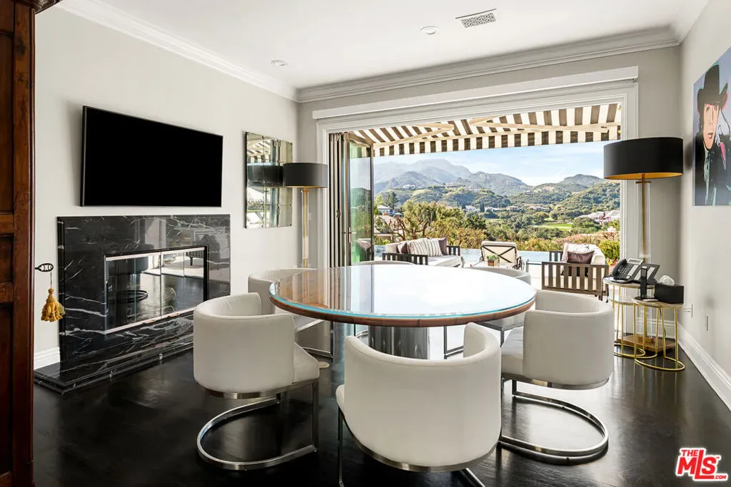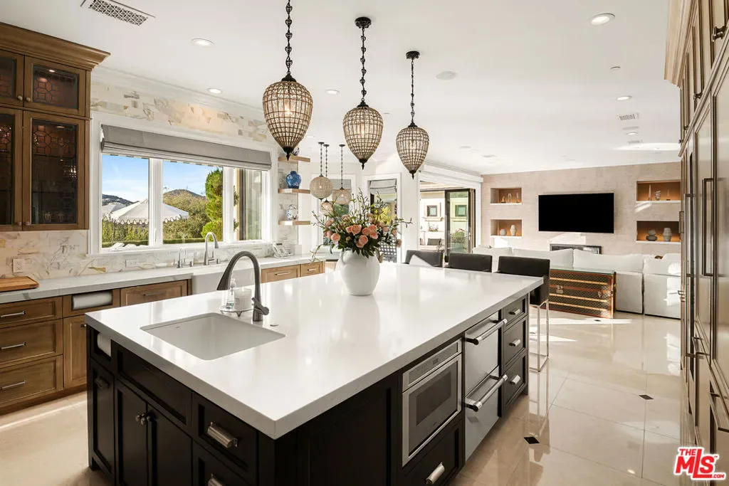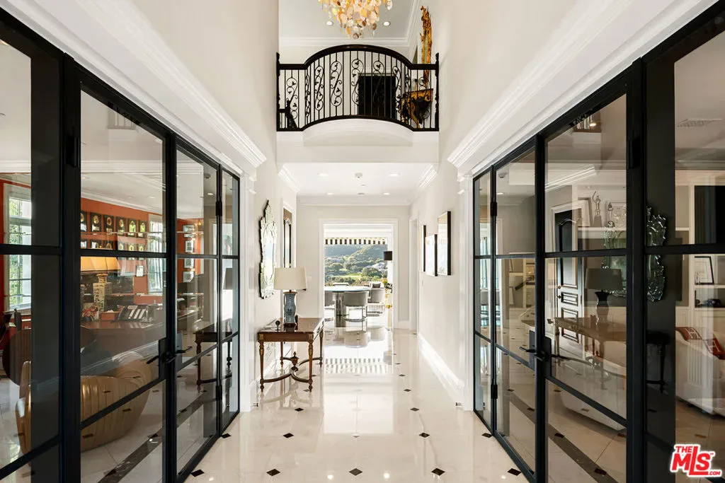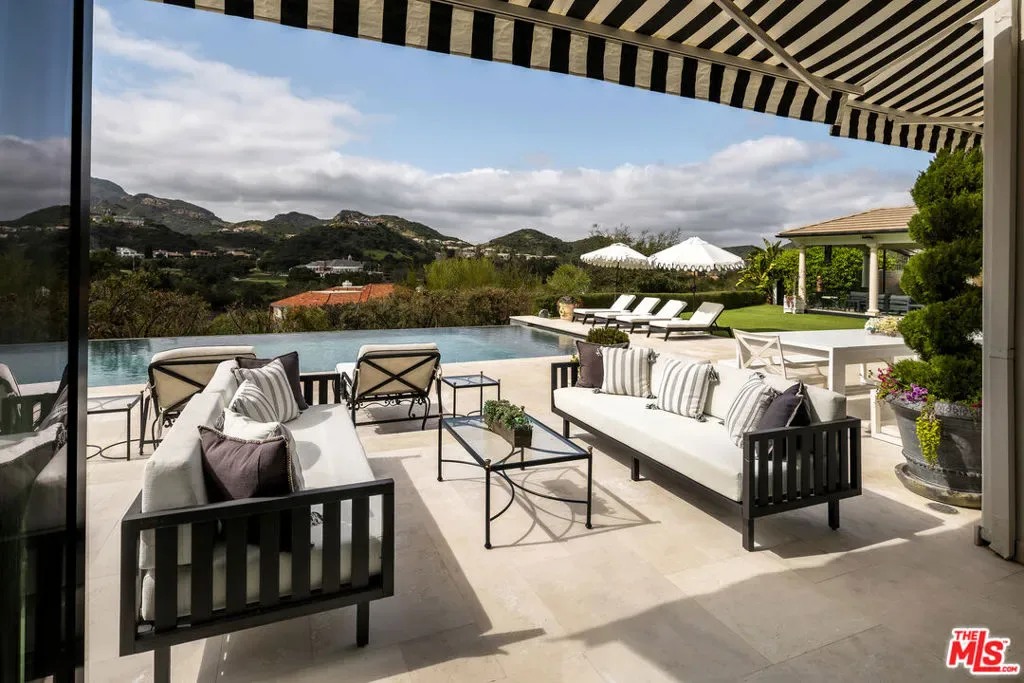 Perched along coveted Stafford Road within the gates of Sherwood Country Club, this modern French villa sits on one of the community’s rarest offerings more than six private acres overlooking the iconic clubhouse, rolling greens, and surrounding mountains. Designed and built for its owner to live, entertain, and create in total privacy, the estate captures panoramic golf course and mountain views from nearly every room. A long gated driveway leads to a grand motor court for six or more vehicles and a dramatic two-story entry filled with natural light. Recently updated with exceptional finishes, the residence features a reimagined chef’s kitchen with dream pantry, hidden office, billiard room, and professional recording studio. Stone floors, soaring ceilings, and designer lighting add warmth and sophistication throughout. Living and dining spaces open seamlessly to resort-style grounds featuring an infinity-edge pool, fire pit lounge, outdoor dining and BBQ area, gardens, and a freestanding glass-walled gym with A/C, full bath, and outdoor shower. The thoughtful layout includes four en-suite bedrooms and six baths, highlighted by a stunning primary suite with fireplace, dual baths, dual closets, and a private balcony overlooking the estate. A rare offering combining scale, privacy, and front-row views within one of Southern California’s most prestigious gated communities. Only 20 minutes to Camarillo Private Airport.