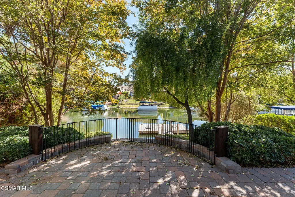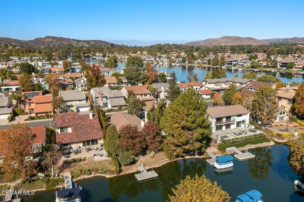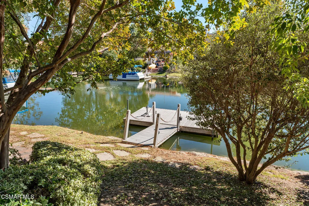 Westlake Village lakeside living at it’s best…RARELY AVAILABLE SINGLE STORY on a serene cul-de-sac in a prime location 4 homes from the main channel. Surrounded by million dollar homes, this light and bright home features a very open and inviting 2 bedroom/2 bath floorplan. Designer touches are everywhere with its neutral colors, stone and hardwood flooring, crown molding and built in bookcases. The spacious main living room has a fireplace and wall of windows with spectacular views of the lake. In the kitchen you will find custom cabinetry with Corian countertops, built in desk and eat in area. The master bedroom includes a fireplace, skylights and a private patio just off the slider. Outside you will love the custom hardscaping providing plenty of sitting areas and room to entertain, with lots of privacy from the beautifully manicured mature landscaping. Don’t forget about your own private lighted dock with boat dock privileges for your boat or simply sitting out and enjoying the serenity of the water. Hurry won’t last! Photos from before current tenant.