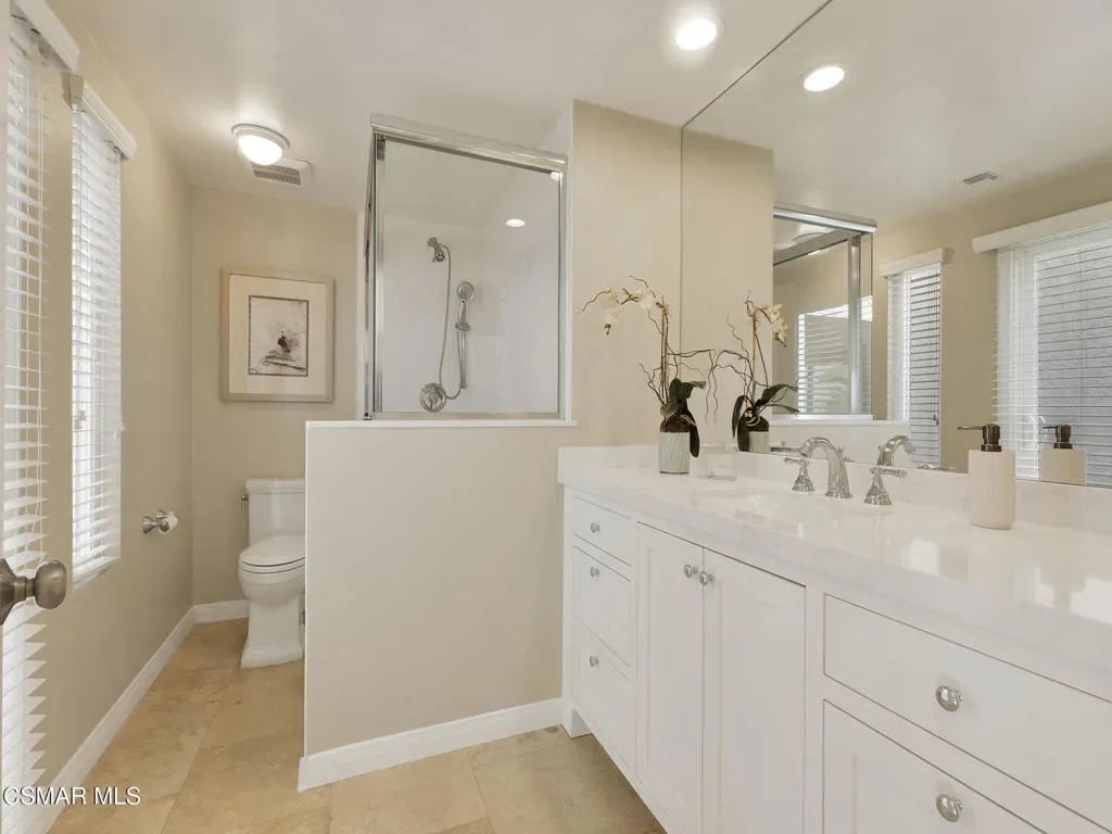 Welcome to this beautiful upgraded home located in the highly sought after Westshore Community! This spacious quality home has it all and is just steps away from the Lake. The home features top of the line materials and appliances, newer AC/ furnace, along with some Handicap accessibility. As you enter the home through the front dutch door, you notice the overall light and bright feeling with vaulted ceilings and an atrium giving you that indoor/ outdoor feel. Moving into the family room you can’t miss the standout floor to ceiling gorgeous custom fireplace perfect for those rainy nights. The newly remodeled kitchen features a new range, microwave, dishwasher, custom self- closing white shaker cabinets, Quartz counter tops, and top of the line fixtures. The home has two bedrooms and two updated bathrooms with hand rails in the primary bathroom shower. Features newer double pane windows and sliding glass doors, with Travertine tile flooring throughout. Also featuring a large indoor laundry room with a large sink and extra storage. The garage is in pristine condition with lots of custom storage and slip resistant flooring. The doors in the home were widened for wheelchair access, it even has a security closet for your most personal possessions and documents to be safely locked away. This home really has it all and it is quality from top to bottom. With this prime location you’re just a short walk to beautiful Westlake Lake, shopping, hiking trails, and amazing restaurants!