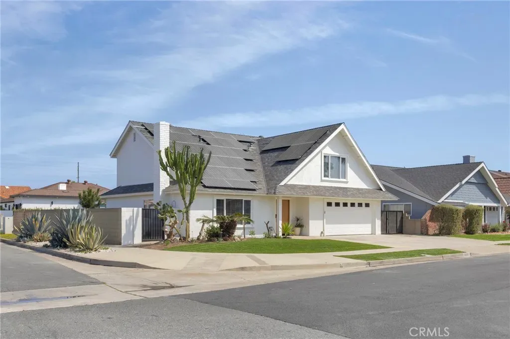 Welcome to 8891 Pebble Beach Circle, a completely reimagined five-bedroom, three-and-a-half-bathroom home ideally situated on a private cul-de-sac corner lot. This thoughtfully redesigned with modern living in mind, this stunning residence offers an exceptional floor plan featuring two primary suites, including a highly desirable main-floor primary—perfect for multigenerational living or guest accommodations. At the heart of the home is the beautifully remodeled kitchen featuring custom cabinetry, stainless steel appliances, and stylish finishes. The kitchen opens seamlessly to the expansive backyard, creating an ideal indoor-outdoor flow for entertaining. With its generous 2,370 sq ft of living space and an additional 206 sq ft of storage space, this home features a thoughtfully designed floor plan that balances open-concept living with comfortable private spaces—perfect for families of all sizes. The 6500 sq ft lot offers incredible potential with room for up to two additional ADUs. Inside, the home showcases luxury vinyl flooring throughout and beautifully updated living spaces that blend comfort with modern coastal style. The fully remodeled interior is complemented by extensive system upgrades including all new PEX plumbing, an updated HVAC system including newly installed ducting, water heater, electrical panel and a newly installed composition shingle roof. Energy efficiency is built in with fully paid solar panels, while the finished garage features durable epoxy flooring for a clean, polished look. The exterior has been completely refreshed with new landscaping, fresh sod in both the front and backyard, sprinkler system, and a brand-new patio cover—creating the perfect outdoor space for relaxing or entertaining.