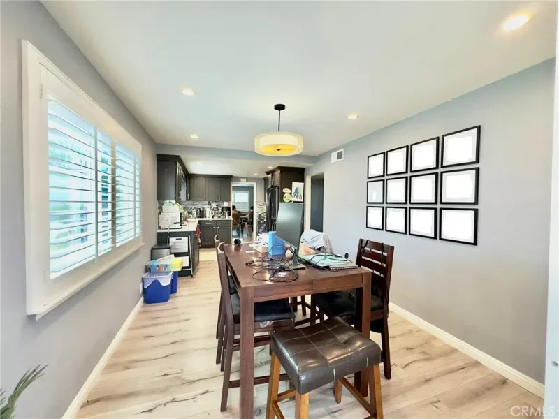 Don’t miss this beautifully upgraded single-story gem nestled in the heart of Westminster. This turnkey 3 bedroom 2 bath home has been thoughtfully updated throughout and is move-in ready for its next family. Inside you’ll find luxury vinyl plank flooring, recessed lighting, plantation shutters, and an open kitchen with shaker cabinets, quartz countertops, stainless steel appliances, and tile backsplash. Both bathrooms are fully renovated with tile showers, frameless glass enclosures, black matte fixtures, and quartz vanities. Step outside to your private backyard oasis featuring a custom paver patio, solid wood covered structure with ceiling fan, mature fruit trees, storage shed, and block walls. The front yard features low maintenance artificial turf, perfect for conserving water and keeping costs down. Additional highlights include an attached two car garage, no HOA, and a prime Westminster location minutes from the 405, Little Saigon, well-rated schools, and the best of Orange County dining and shopping.