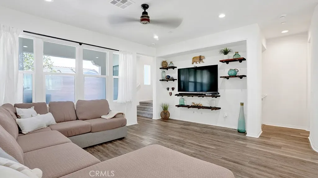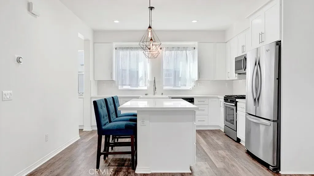 Experience Modern Living in Beautiful Pacific Walk! This Gorgeous 3 Bed, 2.5 Bath Home Offers Great Comfort and Amenities. Light and Bright, with A Fourth Room To Be A Potential Office, Den, Gym or Playroom. Boasting an Open Concept Floor Plan with a Large Kitchen and Butler’s Pantry, Kitchen Island, Newer Kitchen Cabinets, Quartz Countertops, and Stainless Steel Appliances. Also, A Private Balcony Off the Living Room. Featuring A Primary Bedroom Suite with Dual Sink Vanity and Walk-In Closet. Stackable Washer and Dryer Closet Upstairs. Laminate Flooring Throughout and Recessed Lighting and Ceiling Fans. Central Heating and Air and New Paint. Ample Storage Including a Built-In Murphy Bed in One of the Bedrooms. Attached Two Car Garage with EV Charger. Close to Schools, Shopping, Restaurants and Shopping. Come See It Today Because It Will Be Gone Tomorrow!