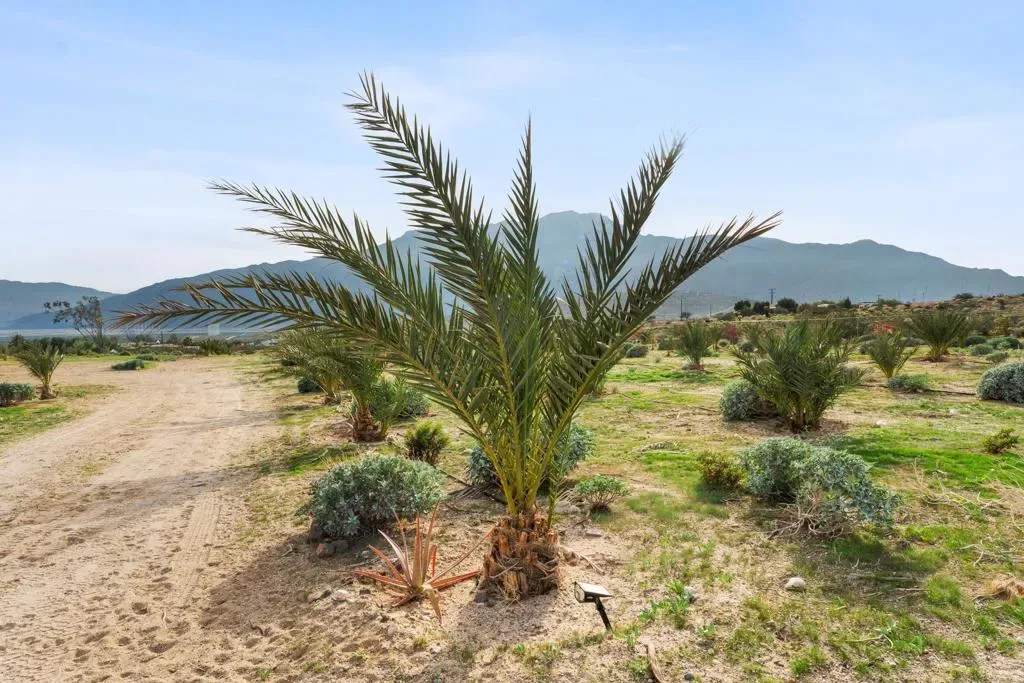 Rare opportunity to own approximately 2.5 acres of usable vacant land in Whitewater, CA, offering wide-open desert views and a peaceful, private setting. The property is fully fenced and features approximately 240 established date palm trees, consisting primarily of Medjool and Barhi (also known as Barhee) varieties, planted throughout the parcel. The palms are young and not yet producing dates, but they are established trees that offer long-term agricultural and aesthetic potential.Water is already connected on the property, and power lines are located nearby, allowing a future owner to explore adding electrical service (buyer to verify availability and costs). The land’s layout and open space make it well suited for a variety of uses, including a private retreat, agricultural use, nursery operation, or long-term investment hold. Enjoy scenic mountain views, surrounding desert landscape, and proximity to the wind farm area while maintaining privacy and open space. Buyer to verify zoning, land use, utilities, access, and development feasibility to their satisfaction.One image included in the marketing materials is an AI-generated conceptual rendering shown for visualization purposes only. No structures currently exist on the property, and the image does not represent approved plans or existing improvements.