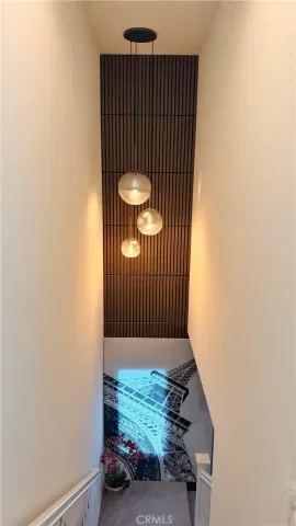 Designer touches are woven throughout. Custom wooden slat accent wall at the entry stairway. Edison-style fixtures in bedrooms and bathrooms. Elegant multi-light pendant fixtures on both stairways. Fresh interior paint. Window treatments including curtains and blinds throughout. Every detail was chosen with intention.