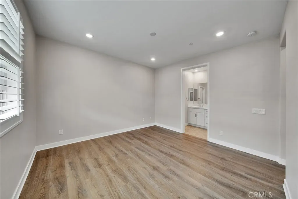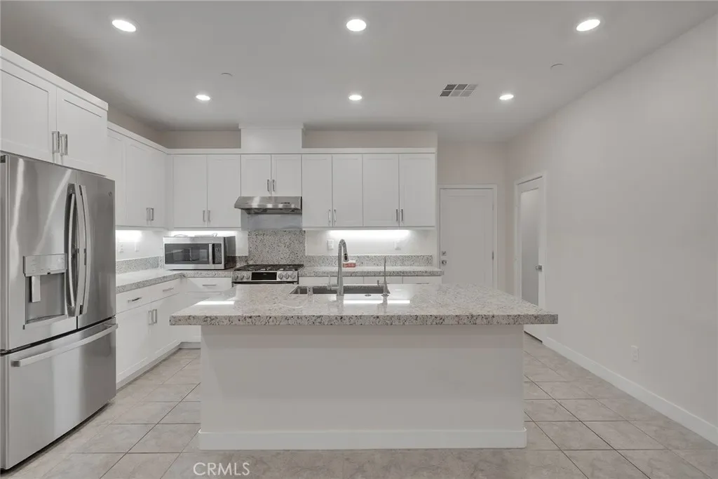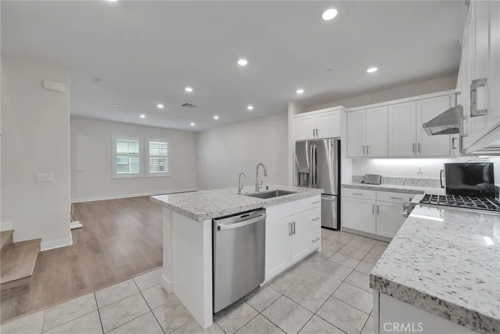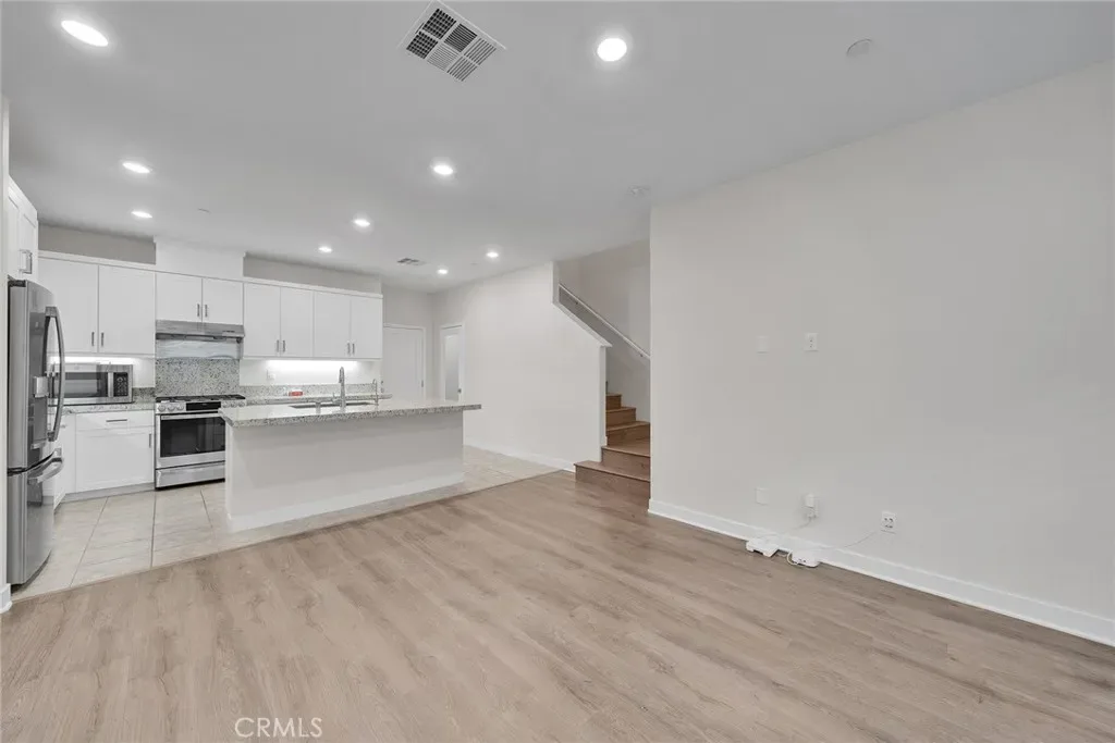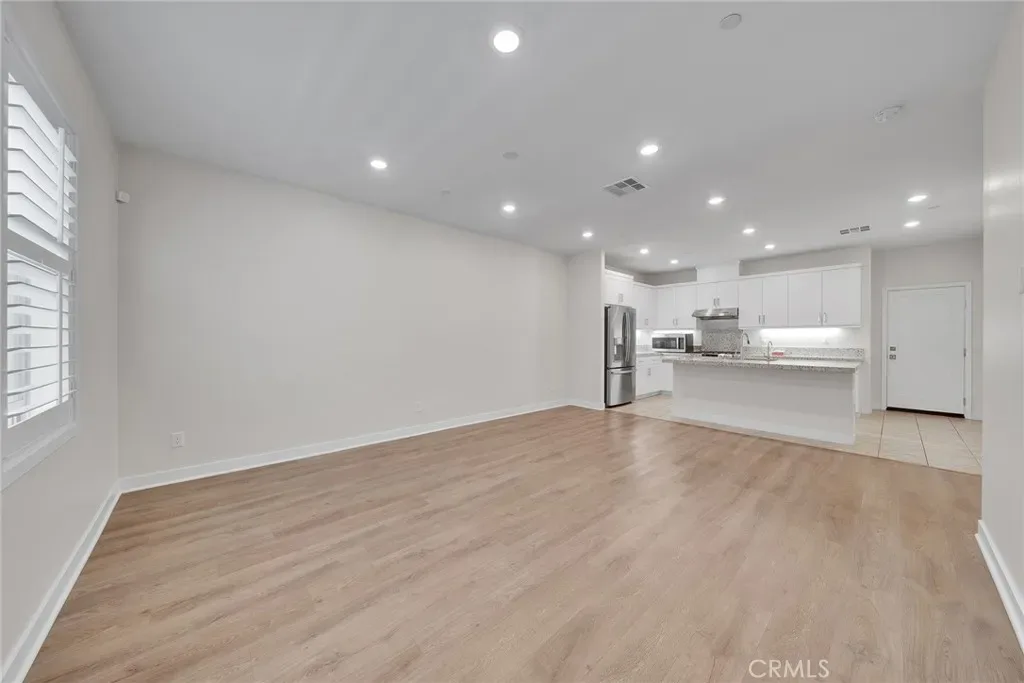 Designed for comfort and functionality, this residence is located within The Groves, a thoughtfully planned community in Uptown Whittier. Built in 2021, this two-story condominium offers 3 bedrooms and 3 bathrooms in a layout that balances openness with privacy. The main level features an open living, dining, and kitchen area filled with natural light, enhanced by custom window shutters for light control and privacy, and vinyl plank flooring throughout both the main and upper levels, creating a cohesive and modern feel across the home. All bedrooms are positioned upstairs, including a spacious primary suite with an ensuite bath, and each bedroom has been upgraded with recessed lighting beyond the original builder finish. An attached two-car garage includes ceiling-mounted storage racks for efficient organization, and a private front patio provides a defined outdoor space for relaxing or entertaining. Community amenities include pools, fitness facilities, outdoor gathering areas, fire pit lounges, golf putting greens, and bocce ball courts, along with access to the Whittier Greenway Trail. The location offers convenient proximity to grocery stores, fitness centers, schools, churches, and Uptown Whittier dining and shopping, including Rodeo 72 Public Market, with nearby freeway access for travel toward coastal destinations or mountain recreation.