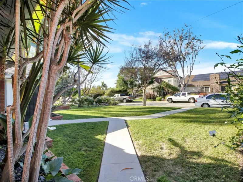 Additional features include a two-car garage with laundry hookups and a spacious backyard adorned with mature fruit trees, including lemon and orange—creating a perfect outdoor retreat.