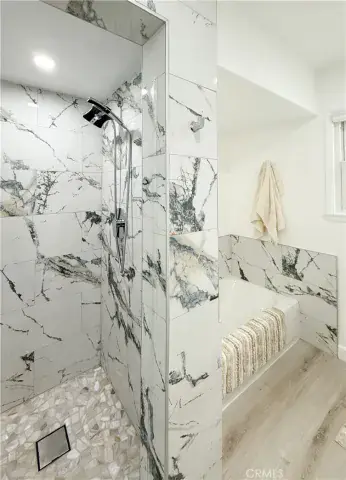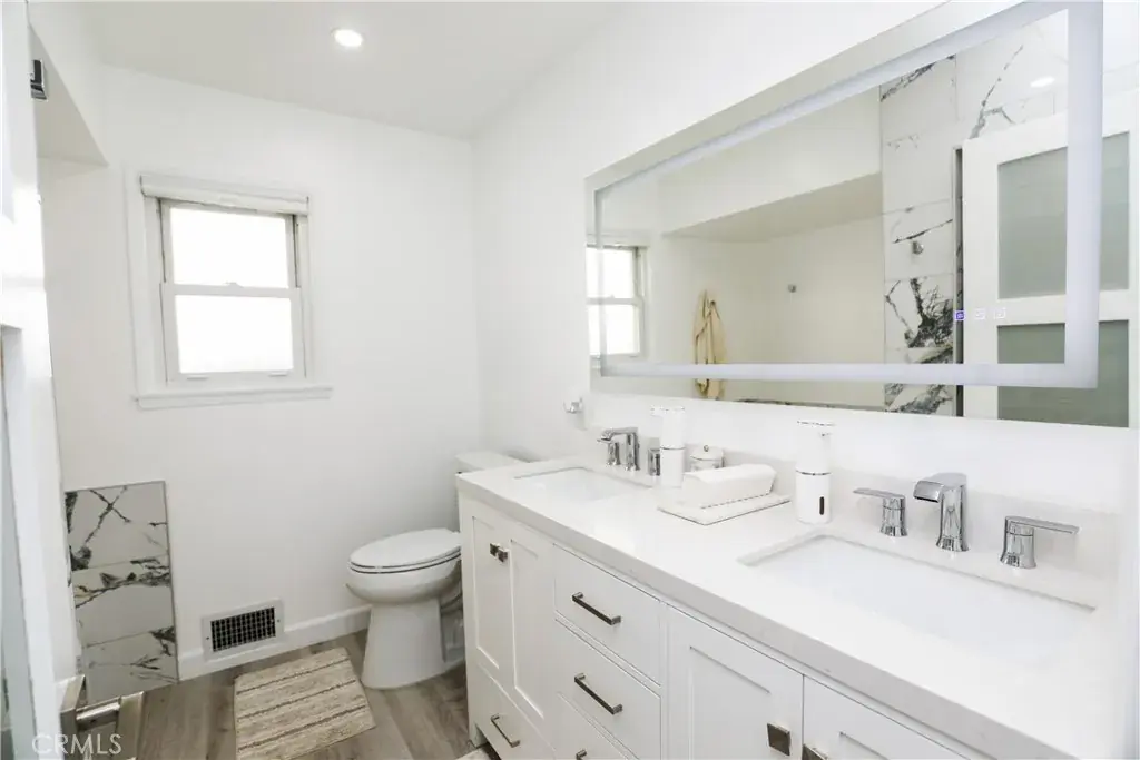 Welcome to a meticulously maintained, thoughtfully upgraded home offering timeless character, modern comfort, and true pride of ownership. Situated on a generous lot, this turnkey residence reflects years of documented improvements and is truly move-in ready. The front of the home creates an inviting first impression with mature palm trees, manicured hedges, a charming white picket fence, and a welcoming front patio with recently refinished flooring. Inside, the bright living room showcases updated wood-like flooring, vaulted wood-beam ceilings that add warmth and architectural charm, and recessed lighting throughout. The primary bedroom is a private retreat featuring a striking stone fireplace, its own exterior entrance, and a discreet secondary “secret” door hidden off the main living area, offering rare flexibility and privacy. The remodeled kitchen is designed for both function and style with quartz countertops, stainless steel appliances, an oversized single-basin stainless steel sink, custom cabinetry with under-cabinet lighting, a tile backsplash, a built-in beverage station surrounded by custom cabinetry, and a quaint dining area enhanced with pendant lighting. The main bathroom has been tastefully updated with modern vanities, undermount sinks, a back-lit digital mirror, satin nickel fixtures, newer window treatments, and dual-pane windows that enhance comfort and energy efficiency throughout the home, while a second water closet is conveniently located in the laundry room and includes a large utility sink. Major system upgrades include a newer roof, upgraded electrical panel, new gas line from the meter to the home, central heating and air, rain gutters, cleanouts, and extensive electrical improvements, along with interior and exterior paint, upgraded interior doors, and updated flooring. The backyard offers a private retreat with vinyl fencing, new driveway and side gates, fresh landscaping, and a spacious covered patio with lighting and electrical, ideal for entertaining or relaxing year-round, and additional highlights include a detached garage with an attached covered storage shed and a long driveway. With an extensive list of improvements including windows, roofing, electrical, HVAC, kitchen and bath remodels, flooring, landscaping, fencing, and more, this home offers long-term value and peace of mind and is conveniently located near schools, shopping, dining, and major freeways in the desirable city of Whittier.