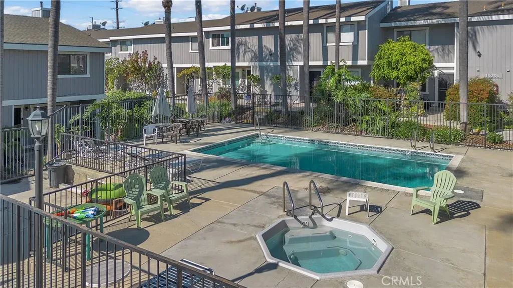 Welcome to this clean and beautifully updated 2-story condo with no neighbors above or below, offering comfort, style, and convenience. The home features durable luxury vinyl plank flooring, recessed lighting, and a modern kitchen with stainless steel appliances and new quartz countertops that provide both elegance and functionality. Generously sized Bedrooms with vaulted ceilings and walk in closet. A new Air conditioning system ensures year-round comfort. Step outside to a private patio with direct access to the spacious two-car garage where washer and dryer hookups are located–perfect for every day convenience. The well-maintained community also offers great HOA amenities including a pool and relaxing jacuzzi, while water and trash and landscaping services are included for added ease. With its thoughtful upgrades and desirable community features, this move-in ready condo is the perfect place to call home.