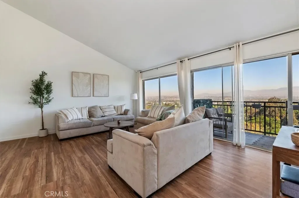 Panoramic Views & Light-Filled Living at Its Finest! Wake up to breathtaking, panoramic views of Downtown Los Angeles from both levels of this beautifully maintained home. From the moment you step inside, you’re greeted by an abundance of natural light and an airy, cheerful ambiance that instantly puts you at ease. The main level showcases a grand living room with soaring vaulted ceilings, a large picture window framing the stunning cityscape, and sliding glass doors that open to a spacious private balcony—perfect for enjoying morning coffee or evening sunsets. The dining area, also enhanced by vaulted ceilings and balcony access, creates a seamless indoor-outdoor flow ideal for entertaining. The updated galley kitchen features sleek quartz countertops, newer appliances, and a bright, functional layout. A stylishly updated guest powder room adds a touch of sophistication. Downstairs, both bedrooms are en-suite, offering comfort and privacy. The guest suite features beautiful city views, generous closet space, and an updated bathroom. The spacious primary suite captures both city and mountain views and opens to a private, fully fenced backyard—an inviting space for relaxing, entertaining, or enjoying time with pets. The primary bath is thoughtfully updated with quartz finishes and a large, modern shower. Additional highlights include central heat and A/C, direct-access garage, and a prime location close to shopping, dining, and easy freeway access. Enjoy an active lifestyle with nearby hiking and biking trails in the Whittier Hills. Bright, cheerful, and filled with incredible views—this is a home you won’t want to miss!