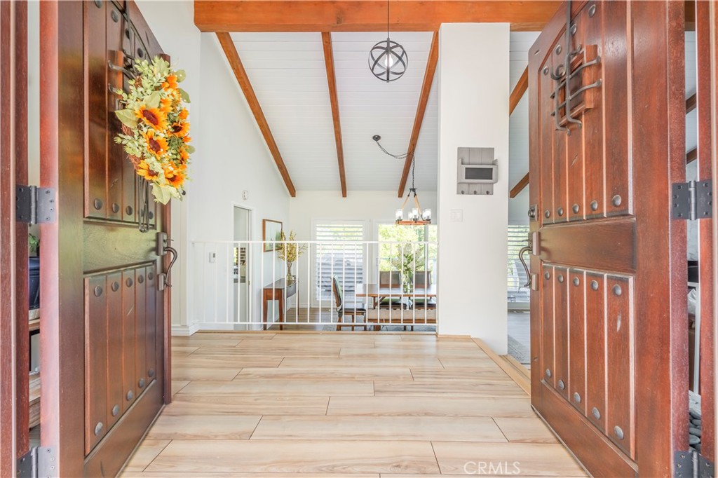 Located in the highly sought-after Friendly Hills neighborhood of Whittier, 8408 La Sierra Avenue is a custom-built residence where luxury and comfort come together. From the moment you enter, a serene, resort-like atmosphere welcomes you. The thoughtfully designed tri-level layout offers an ideal balance of everyday living and effortless entertaining, blending elegance with functionality. The formal living and dining rooms feature soaring wood-beamed ceilings that create a sense of grandeur and warmth. A beautiful stone fireplace and custom built-in bookshelves add character, while expansive windows frame picturesque views of the landscaped grounds and Stunning salt water sparkling pool and patio area—perfect for unforgettable outdoor gatherings.At the heart of the home, the chef-inspired kitchen showcases a large chopping-block island, modern appliances, new cabinetry, and sleek concrete countertops. High ceilings and abundant natural light enhance the open, airy feel, while views of the lush lawn and fruit trees bring the beauty of the outdoors into every culinary experience. The inviting family room, complete with a second fireplace, offers a comfortable space for relaxation and connection. French doors open seamlessly to the backyard oasis, creating a natural extension of indoor and outdoor living. The home features four spacious bedrooms and four bathrooms—some thoughtfully updated with contemporary finishes—along with a convenient oversized indoor laundry room. A versatile bonus room, previously the garage, offers endless possibilities either Guest quarters, home office, dance studio, gym, or potential ADU conversion.The expansive backyard serves as a private retreat, surrounded by flourishing greenery and mature fruit trees. The salt water pool, complete with a slide and diving board, promises endless summer enjoyment, while multiple patio and balcony areas provide ideal spaces for dining, entertaining, and relaxing. Additional highlights include solar panels designed to enhance energy efficiency,Parking is abundant with a semi-circular driveway in the front of the home and extensive gated parking in the rear, offering ample space for multiple vehicles. The property also features a **dedicated electric vehicle (EV) charging outlet. 8408 La Sierra Avenue presents a rare opportunity to experience the quintessential Southern California lifestyle in one of Whittier’s most desirable neighborhoods.**