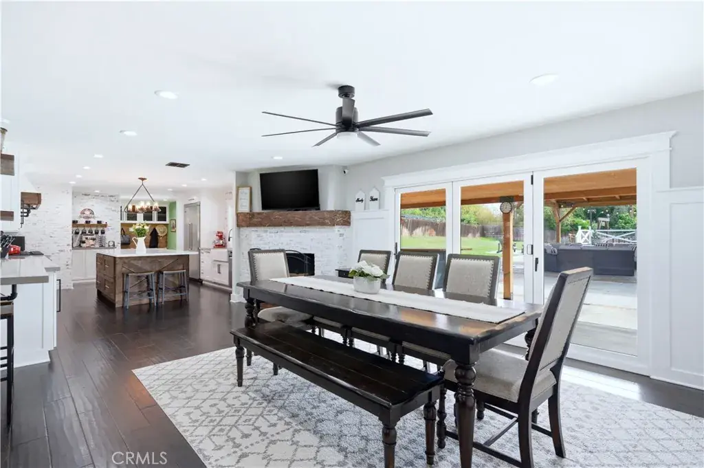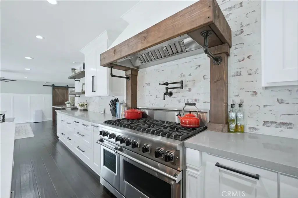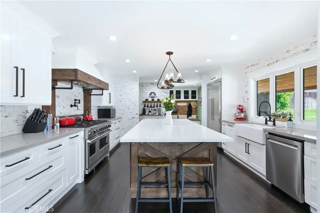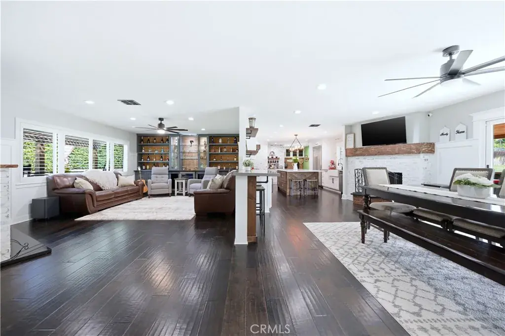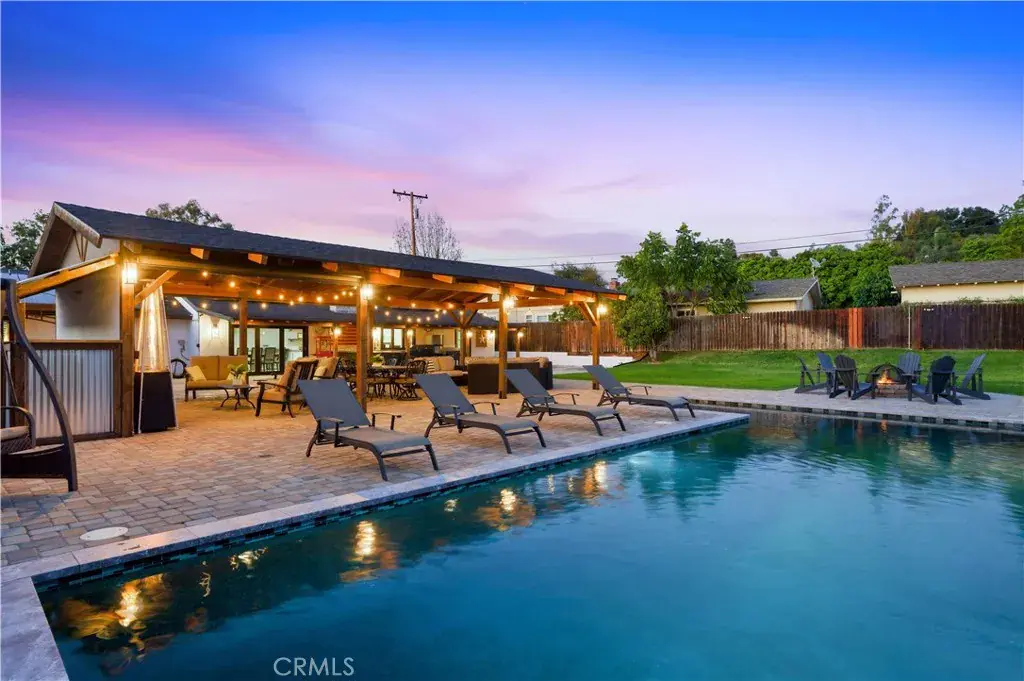 Stunning fully remodeled Friendly Hills home showcasing exceptional farmhouse curb appeal, resort-style backyard living, and an expansive lot of approximately 25,079 sq ft. This beautifully upgraded residence offers approximately 2,000 sq ft of living space with 3 bedrooms and 4 bathrooms, featuring an open-concept floor plan designed for modern living and seamless indoor-outdoor entertaining. The main living area features a fireplace, custom built-in shelving, and wainscoting throughout. Hallway privacy barn doors enhance functionality, and a split barn door in the kitchen adds distinctive farmhouse appeal. The custom farmhouse-style kitchen offers custom cabinetry with abundant storage, custom quartz countertops, a spacious island, and Viking stove, hood, and refrigerator. The kitchen opens to the main living areas and an oversized dining area, accommodating a dining table approximately 10 feet in length. Panoramic custom 9’10” tri-fold door enhance natural light and backyard views. The private backyard offers a true outdoor retreat, featuring an upgraded resort-style pool with PebbleTec finish, waterfalls, custom lighting, new hardscape, elevated deck areas, and a Baja shelf (tanning ledge) ideal for in-water lounging. The pool is designed with 4-foot depths on both ends and a 6-foot center section. The backyard patio is finished with pavers for a refined entertaining space. Designed for entertaining, the detached covered patio (approx. 684 sq ft) includes ceiling fans, built-in lighting, outdoor roller shades, and a designated wall for mounting entertainment equipment and a TV, creating a seamless indoor-outdoor experience. The grounds include mature fruit trees and garden areas, including combo apple trees (Anna, Fuji, Gordon, and Dorsett varieties), peach, guava, pear, pomegranate, apricot, and plum trees, along with eight large vegetable/fruit beds. Additional features include a 2-car garage, spacious yard with abundant possibilities, and location in the desirable Friendly Hills community within the La Serna High School district (buyer to verify). Major upgrades include an extensive interior remodel of all rooms and bathrooms approximately 3 years ago; HVAC replaced approximately 3 years ago; plumbing approximately 80% copper with newer plastic piping primarily in bathrooms; roof with newest shingle layer installed approximately 15 years ago and a fully owned solar system with approximately 30 panels installed approximately 12 years ago.