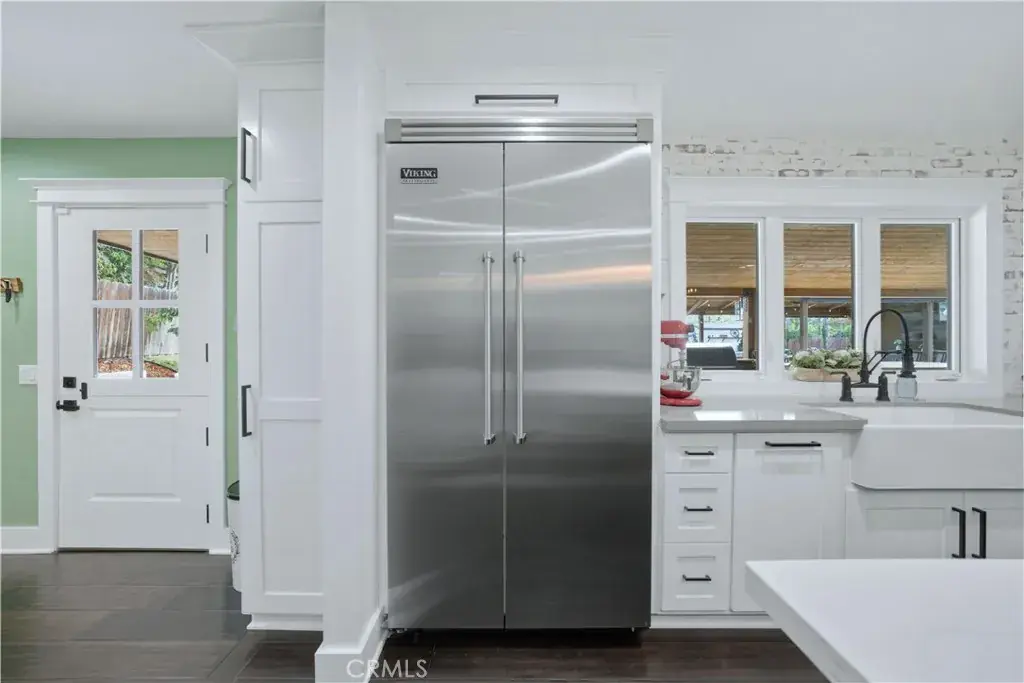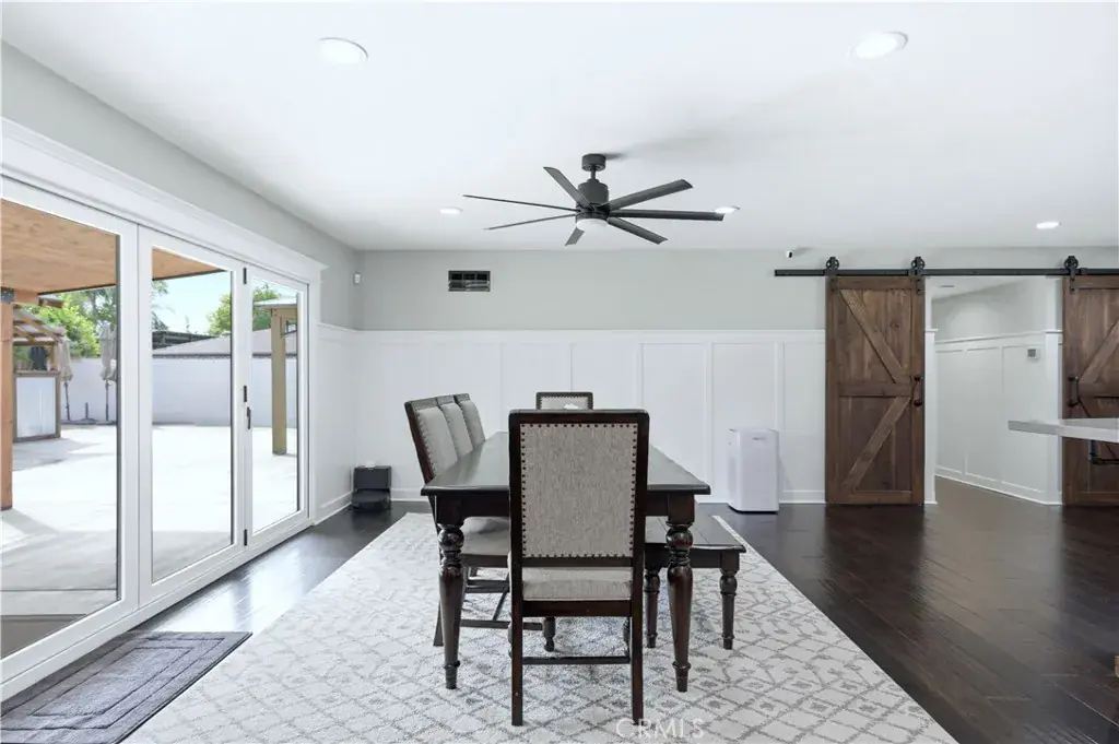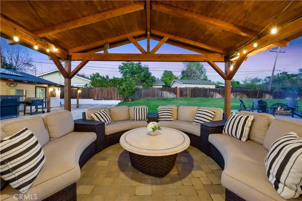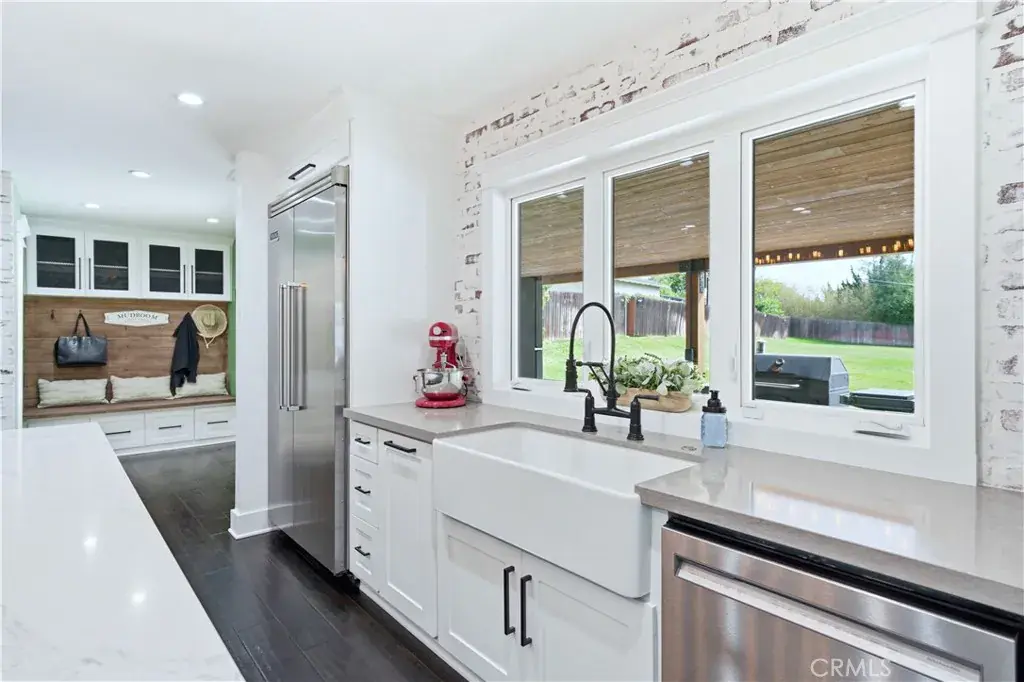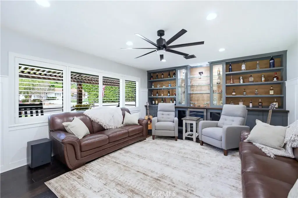 Stunning fully remodeled Friendly Hills home showcasing exceptional farmhouse curb appeal, resort-style backyard living, and an expansive lot of approximately 25,079 sq ft. This beautifully upgraded residence offers approximately 2,000 sq ft of living space with 3 bedrooms and 4 bathrooms, featuring an open-concept floor plan designed for modern living and seamless indoor-outdoor entertaining. The main living area features a fireplace, custom built-in shelving, and wainscoting throughout. Hallway privacy barn doors enhance functionality, and a split barn door in the kitchen adds distinctive farmhouse appeal. The custom farmhouse-style kitchen offers custom cabinetry with abundant storage, custom quartz countertops, a spacious island, and Viking stove, hood, and refrigerator. The kitchen opens to the main living areas and an oversized dining area, accommodating a dining table approximately 10 feet in length. Panoramic custom 9’10” tri-fold door enhance natural light and backyard views. The private backyard offers a true outdoor retreat, featuring an upgraded resort-style pool with PebbleTec finish, waterfalls, custom lighting, new hardscape, elevated deck areas, and a Baja shelf (tanning ledge) ideal for in-water lounging. The pool is designed with 4-foot depths on both ends and a 6-foot center section. The backyard patio is finished with pavers for a refined entertaining space. Designed for entertaining, the detached covered patio (approx. 684 sq ft) includes ceiling fans, built-in lighting, outdoor roller shades, and a designated wall for mounting entertainment equipment and a TV, creating a seamless indoor-outdoor experience. The grounds include mature fruit trees and garden areas, including combo apple trees (Anna, Fuji, Gordon, and Dorsett varieties), peach, guava, pear, pomegranate, apricot, and plum trees, along with eight large vegetable/fruit beds. Additional features include a 2-car garage, spacious yard with abundant possibilities, and location in the desirable Friendly Hills community within the La Serna High School district (buyer to verify). Major upgrades include an extensive interior remodel of all rooms and bathrooms approximately 3 years ago; HVAC replaced approximately 3 years ago; plumbing approximately 80% copper with newer plastic piping primarily in bathrooms; roof with newest shingle layer installed approximately 15 years ago and a fully owned solar system with approximately 30 panels installed approximately 12 years ago.