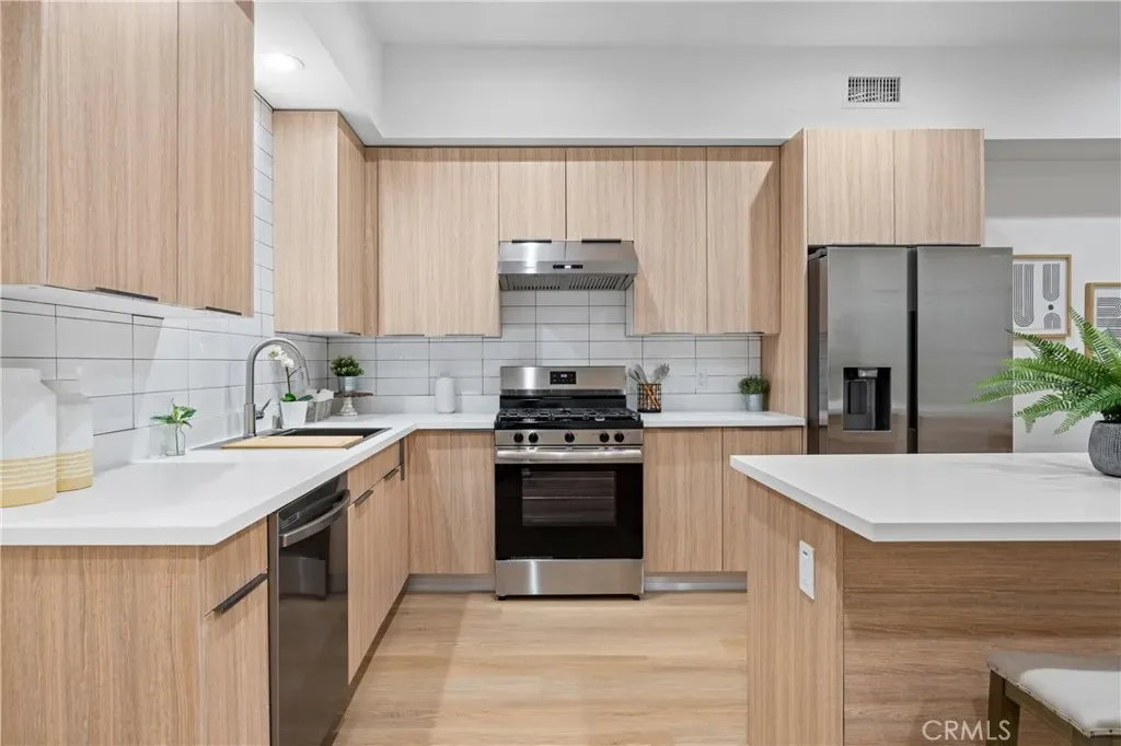 These generously sized 3-bedroom units also include assigned parking for 2 vehicles. Similar to the 2-bedroom units, they are outfitted with modern finishes, quartz countertops, recessed lighting, wood flooring, high-end appliances, and washer/dryer hookups.