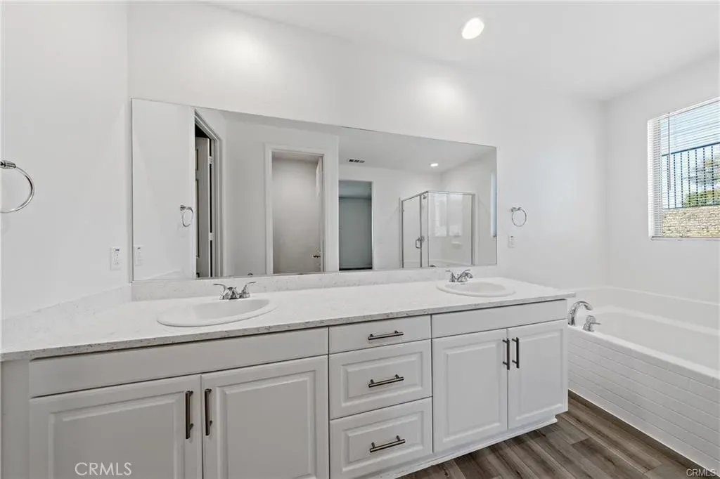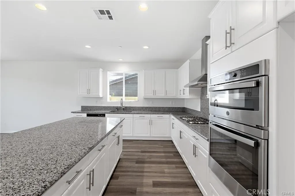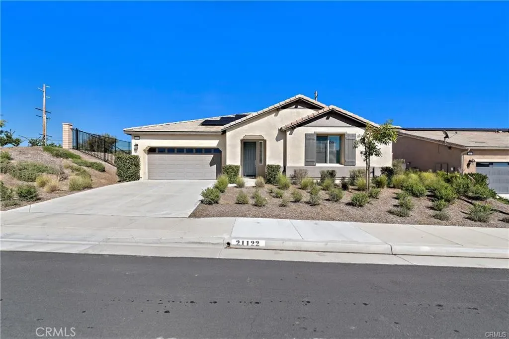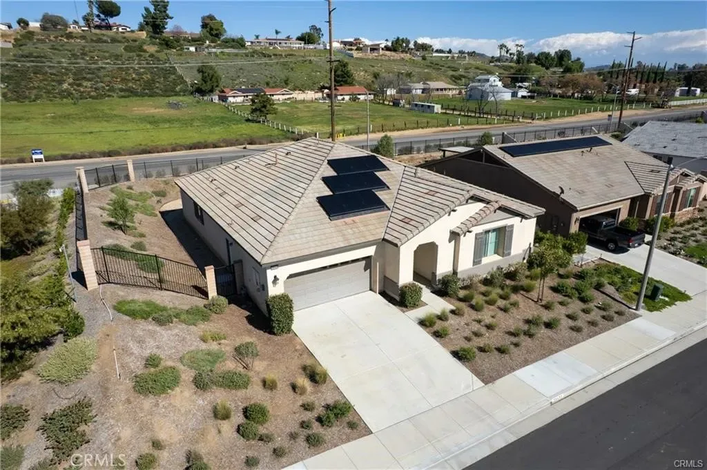 This single story Wildomar home offers a modern and spacious design with 4 bedrooms 2.5 bathrooms, a 3-tandem car garage providing ample parking, sits on a corner lot AND Solar is INCLUDED! Coming inside, you’ll find a well thought out floor plan featuring over 2400 sqft of living space and upgraded LVP flooring throughout the common areas, with carpet only in 3 out of the 4 bedrooms. Two bedrooms are located off the entryway, sharing a bathroom with a shower/tub combo. Beyond the entry, you’ll find a spacious laundry room, a half bath and a third bedroom. The open concept kitchen is a highlight of the home, featuring granite countertops, white cabinets, and a large island that’s perfect for meal preparation and casual dining. This kitchen seamlessly transitions into the spacious family room and dining area, making it an ideal space for entertaining and family gatherings. The primary bedroom is located off the family room and impresses with its size and an abundance of natural light. The attached primary bathroom is equipped with dual sinks, a soaking tub, a separate shower, and a generously sized walk-in closet! Outside, the backyard offers plenty of open space, no rear neighbors and potential for various activities. This home is located near schools, freeway access, shopping, dining and more!