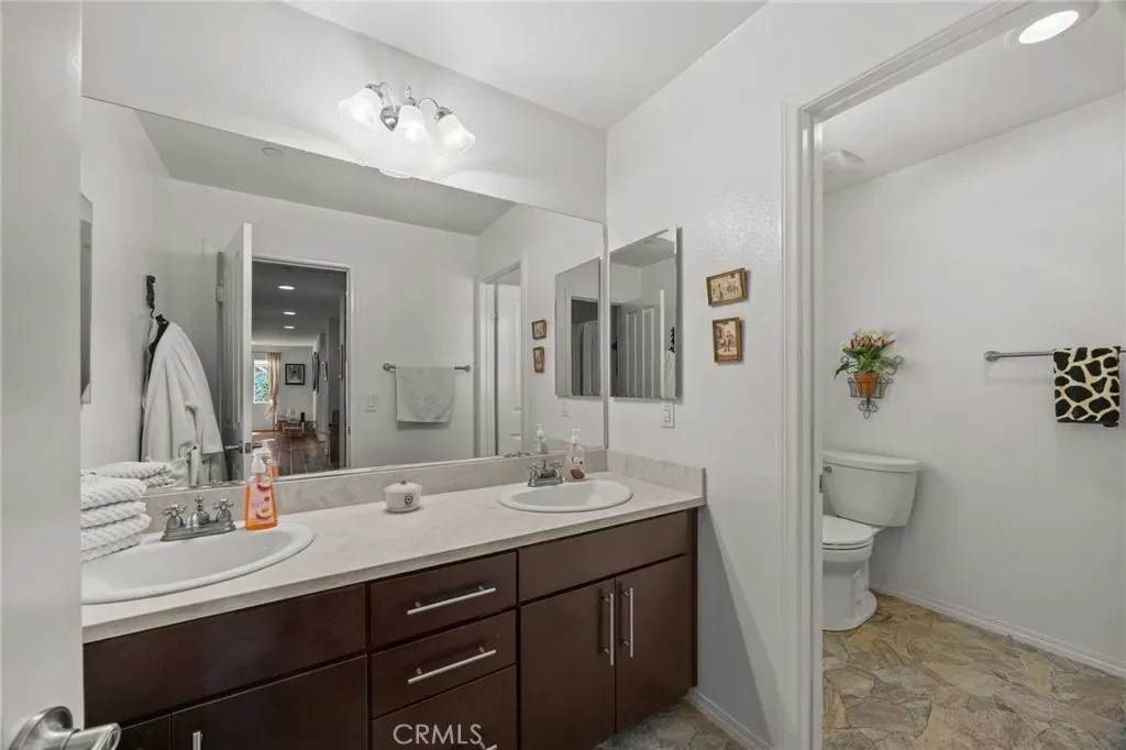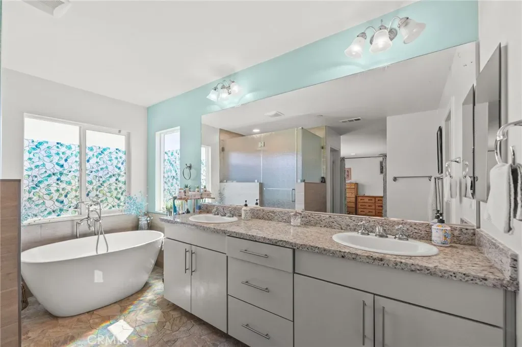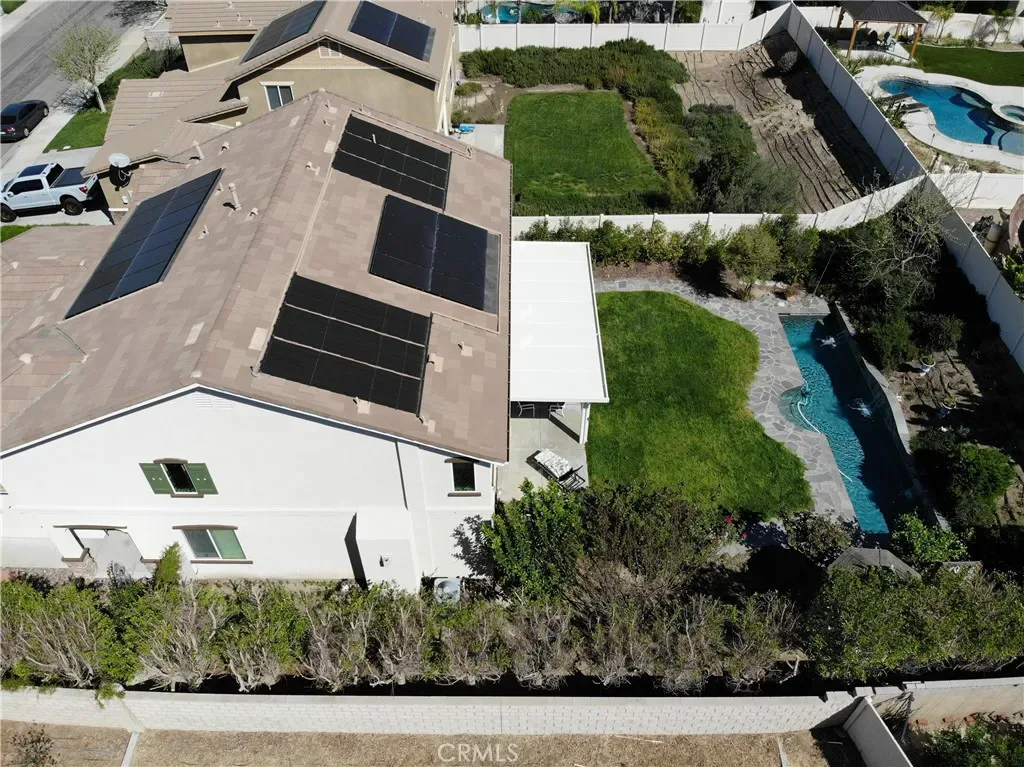 Spacious and highly upgraded home in Wildomar with over 3,600 square feet of living space, a Next-Gen apartment space, and a backyard designed for Southern California living. Built in 2012, this property combines functionality, comfort, and versatility.The main home features 4 bedrooms, 3.5 bathrooms, and a large loft, along with abundant storage throughout. Exterior updates include fresh Behr paint. Custom wood shutters, and architectural details such as softened arches. The open-concept kitchen is designed for everyday living and entertaining, featuring a large center island, built-in refrigerator, stainless steel appliances, 5-burner Wolf range, walk-in pantry, and pull-out cabinetry.The primary suite includes a custom-designed bathroom with a spacious walk-in shower featuring sauna-inspired design elements and low-maintenance rain glass.An attached 1 bedroom, 1 bathroom private apartment provides flexible use options and includes its own private courtyard and stackable washer and dryer.Situated on a 9,148 square foot lot, the backyard includes a flagstone Saltwater lap pool with fountains, outdoor shower, oversized Alumawood patio cover, and a custom hardwood gazebo. Additional outdoor features include a private courtyard with Spanish pavers.Energy-efficient upgrades include solar (lease) for both the home and pool, along with a tankless water heater. Additional features include a tile roof, mountain views from the second floor, and a low HOA. Located near parks, shopping, dining, and convenient commuter access, this property offers a well-rounded combination of space, upgrades, and flexible living. 8 minutes to Starbucks, 3 minutes to Stater Bro’s, 5 minutes to David A Brown middle school, 3 minutes to Donald Graham grade school, 3 minutes to a favorite Italian restaurant. And for the commuters, 4 minutes to the 15 freeway.