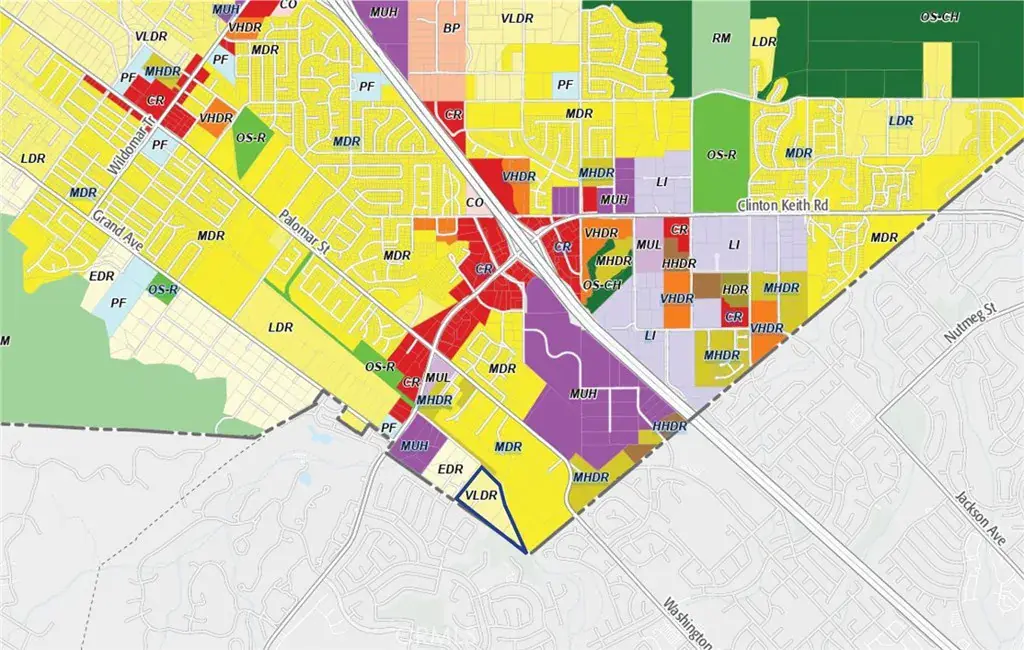 The offering consists of three legal parcels totaling approximately 30.35 acres of land located in the City of Wildomar on the border of Murrieta. The property is primarily flat, has the shape of a right triangle, and is accessible via Ranch Mirlo Road which is a dirt road off of Clinton Keith Road. Surrounding the property in all directions except north are existing and incoming single-family communities as well as a community park. Additionally, the property has an expired TTM that consisted of 51 single-family lots on about 16 of the 30 acres, with the remaining 14 acres designated as open space. The EVMWD has jurisdiction over the property for water and sewer utilities and provided ownership with will-serve letters for the expired map. EVMWD was going to allow the development to bore under the Murrieta Creek to connect to the water outlet in the adjacent D.R. Horton project. However, the sewer connection was going to come from the adjacent Copper Canyon Park which is serviced by the Rancho California Water District who agreed to the connection. The property has a zoning classification of Rural Residential (RR). However, in the recently adopted and updated General Plan, the entire +/- 30.35 acres has been designated as of Very Low Density Residential (VLDR). This allows for single-family detached residences at a density range of 1 dwelling unit per 1-2 acres, with 1 acre lots being the minimum and 2 acre lots being the maximum. Buyer to confirm. Please reach out with any questions.