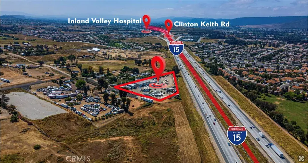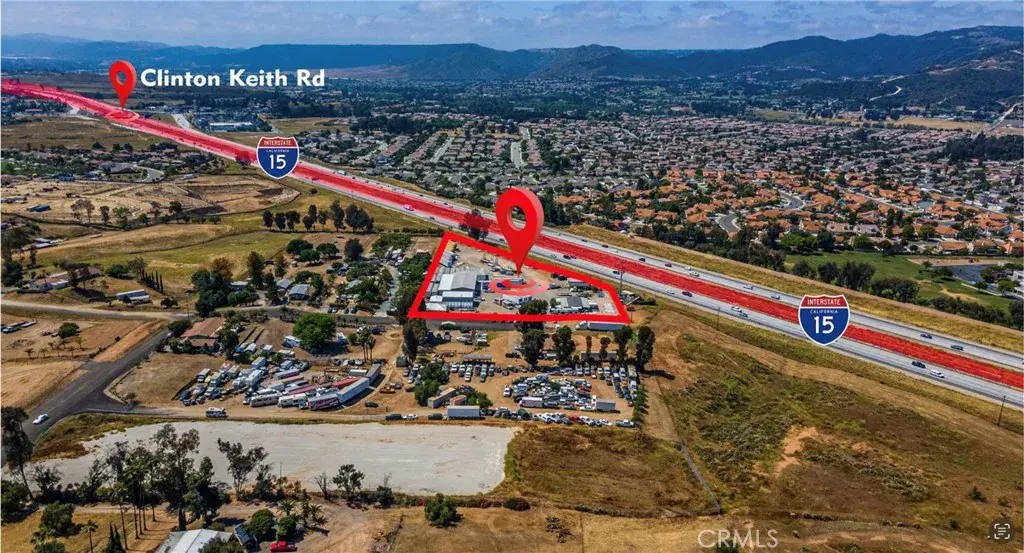 MSC ZONING!!! Located on the 15 FWY between Wildomar Trail and Clinton Keith with 600’ +/- of Freeway Frontage. Approx 9000 sqft of building space and 1600 sqft of remodeled office space. All flat and usable fully fenced 3+ acres with income producing tenants. Property is on well and septic.