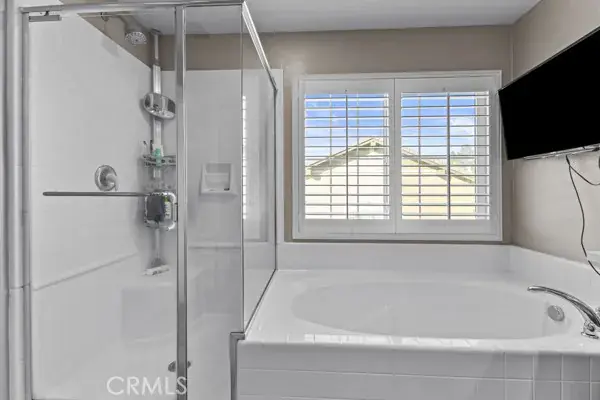 Upstairs, the secondary bedrooms are spacious and well-appointed, sharing a full bathroom with dual sinks, a tub/shower combo. Another bedroom offers an en-suite shower in bathroom perfect for teens, guests, or a live-in nanny. The primary suite is a luxurious retreat with a generous walk-in closet, dual vanities, soaking tub, separate shower, and a private walk-in closet.