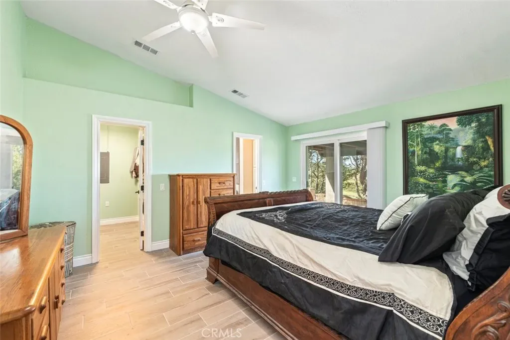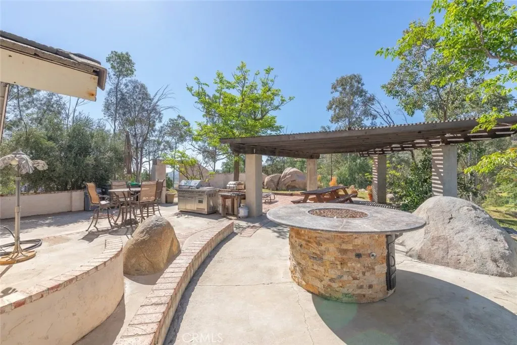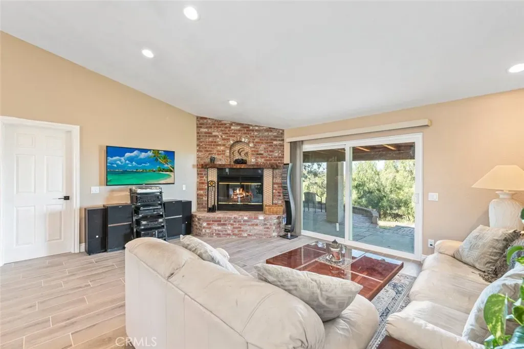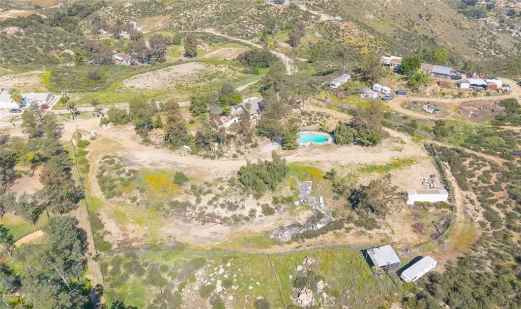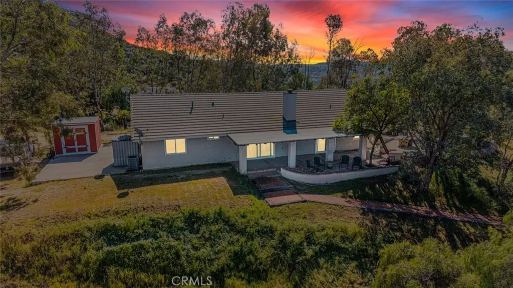 Welcome home to this stunning single-story ranch-style POOL home featuring 3 bedrooms plus an office/den (easily converted to a 4th bedroom), 2 full bathrooms, and located on an incredible 6.46 acres which are usable and secluded. This property has with LOW TAXES and NO HOA. Offering breathtaking 180-DEGREE PANORAMIC VALLEY VIEWS that provides the perfect balance of privacy, space, and convenience—ideal for RVs, toys, horses, or future expansion. Inside, the home showcases gorgeous porcelain tile flooring throughout, new baseboards, all new door casings, new interior and exterior doors and a thoughtfully designed layout that includes a formal living room, formal dining area, and an impressive chef’s kitchen. The kitchen features custom built-in cabinetry, granite countertops, bar seating, a cooktop with vented hood, stainless steel appliances, decorative tile backsplash, wine cooler, and a charming bay-window sitting area perfectly positioned to capture the sweeping views. The spacious family room offers vaulted ceilings, a cozy fireplace, and abundant natural light, creating an inviting space for everyday living and entertaining. Recent upgrades include newer vinyl windows and sliding doors throughout, along with a new AC system. The primary suite is large and private, featuring vaulted ceilings, a walk-in closet, sliding door access to the outdoors, and a beautifully updated bathroom with a custom walk-in shower. Two additional bedrooms are generous in size and share a remodeled hallway bathroom with dual sinks, a tub/shower combo, and ample storage. Additional highlights include a large indoor laundry room with cabinetry and potential exterior access, making it ideal as a mudroom. Outdoors, enjoy multiple patio areas, a fire pit for crisp evenings, and endless opportunities to relax while taking in the expansive valley views. The property offers miles of scenic riding trails, extensive usable land suitable for an equestrian setup or boarding facility, and most of the acreage is fenced. An additional graded pad outside the fenced area provides an excellent opportunity for a future ADU. Located close to shopping, businesses, schools, restaurants, and the 15 & 215 freeways, this property offers the rare combination of being near everything while still feeling far removed from the hustle and bustle of city life. This is truly country living at its finest—don’t miss this exceptional opportunity.