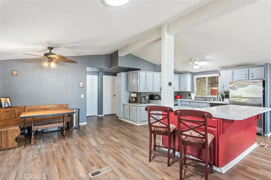 Welcome to “THE FARM” in Wildomar—where low taxes, low HOA, and an amenity-rich lifestyle come together in one of the area’s most desirable communities! This charming manufactured home on a permanent foundation offers 2 bedrooms, 2 bathrooms, and a bright, open floor plan designed for comfortable everyday living and effortless entertaining. Step inside to a spacious great room that flows seamlessly into the dining area, creating a warm and inviting space filled with natural light. The large cook’s kitchen is the heart of the home, featuring large countertops, a decorative backsplash, a window over the sink, an oversized breakfast bar, and abundant cabinetry for all your storage needs. The generously sized primary suite offers a relaxing retreat with its own private bathroom, while the secondary bedroom is well-proportioned and conveniently located near the full hallway bath. Additional highlights include a separate laundry room and dual pane windows for energy efficiency. Outside, enjoy a longer driveway with two covered carport spaces that offer flexibility and potential for additional uses. The expansive backyard is truly a standout feature—boasting a large covered patio, pool-sized lot, firepit, and a spacious storage shed. With plenty of room to entertain, relax, or customize, you’ll love taking in the beautiful mountain views and serene surroundings. Living in The Farm means access to incredible community amenities including 3 swimming pools, a fishing pond, 2 parks, baseball field, dog park, tennis and basketball courts, community garden, RV parking, citrus groves, and miles of hiking and biking trails for outdoor enthusiasts. Conveniently located near the 15 and 215 freeways, this home offers easy access for commuters, along with nearby shopping, dining, casinos, and Temecula wine country. A rare opportunity to own in a vibrant community with so much to offer! Book your showing today!