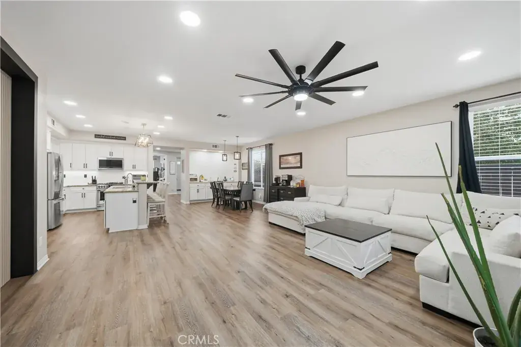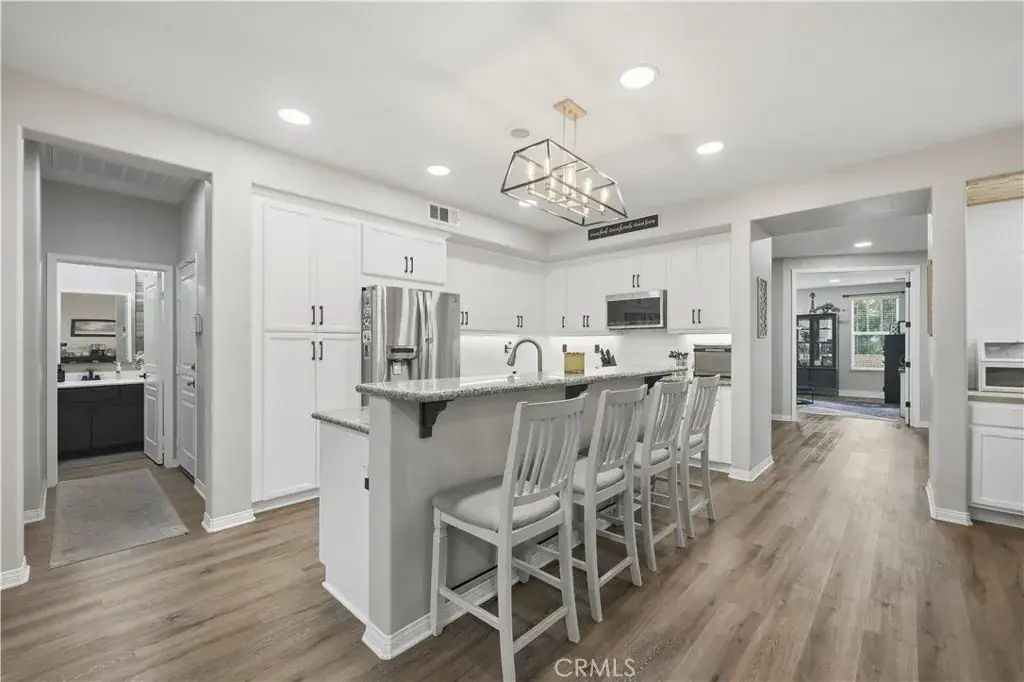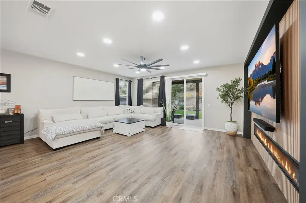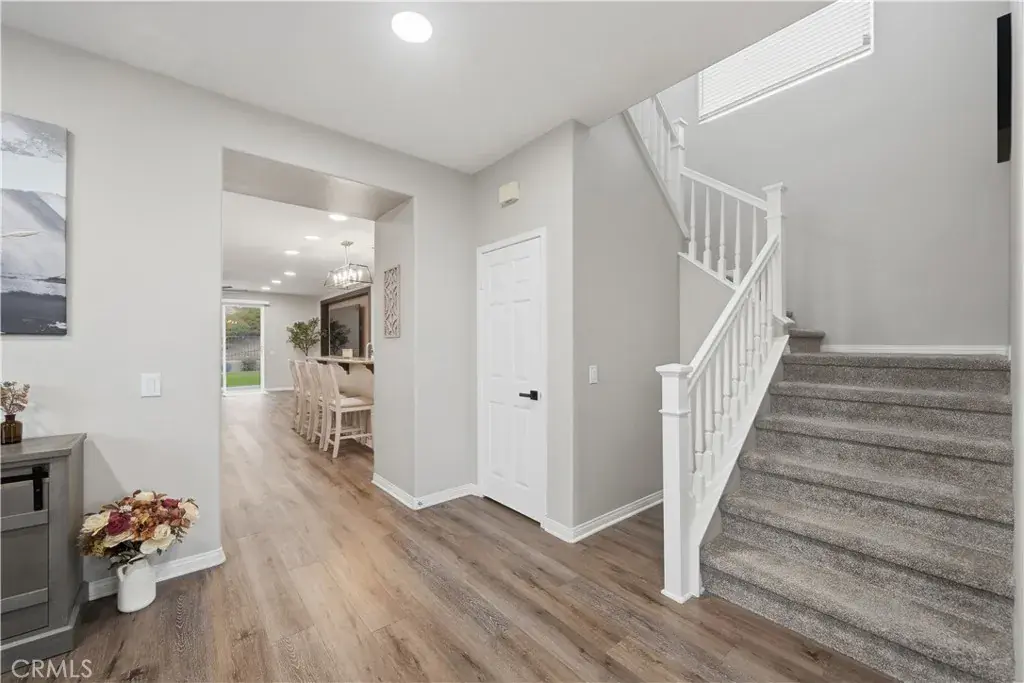 Beautifully updated home with solar located in the highly desirable Smith Ranch community of Wildomar— bordering Murrieta with easy access to freeways, shopping, schools, parks, and trendy dining! This turnkey residence offers nearly 3,000 sq ft of well-designed living space featuring 4 bedrooms and 3 full bathrooms, including a highly desirable MAIN LEVEL BEDROOM AND FULL BATH—perfect for guests, multigenerational living. Inside, you’re welcomed by a large mudroom with built-in storage and OPTIONAL 5th BEDROOM, currently being used as an office accented by elegant French doors. The renovated kitchen is a true showstopper, showcasing soft-close cabinetry and drawers, stainless steel appliances, granite countertops, and a designer backsplash. Seamlessly connected living spaces include a formal dining room, dining nook, and a spacious family room highlighted by a custom gas fireplace—ideal for both everyday living and entertaining. Tasteful upgrades throughout the home include custom interior paint, luxury vinyl plank flooring in the main living areas and bathrooms, and plush carpeting in all bedrooms. Upstairs, the primary suite features dual oversized closets, a cozy gas fireplace, and a beautifully updated en-suite bath with dual vanities and a custom walk-in shower. Additional highlights include an upgraded secondary bathroom and an upstairs laundry room complete with washer and dryer. Paid off solar system adds energy efficiency and long-term savings, completing this exceptional home that truly checks all the boxes. Welcome Home!