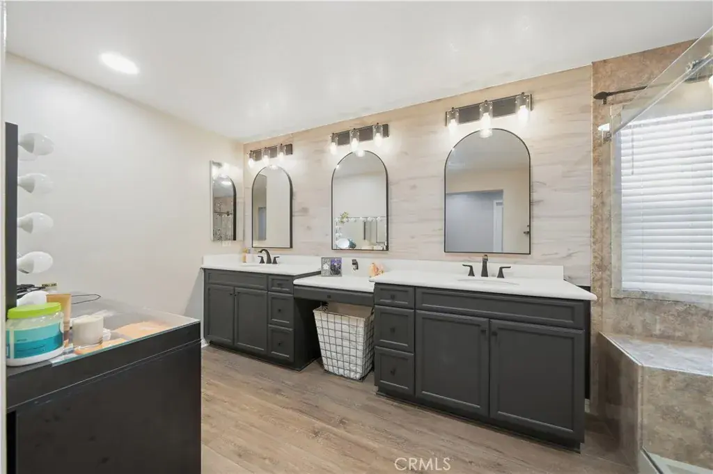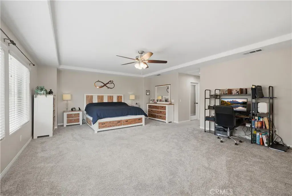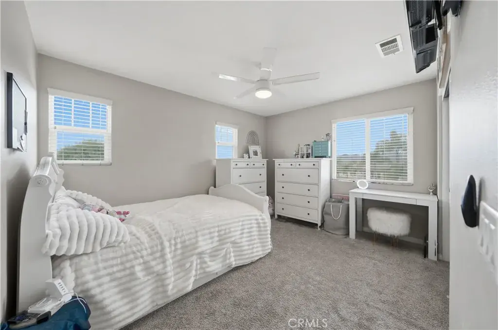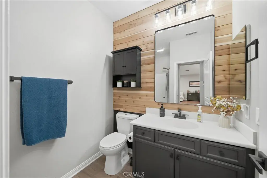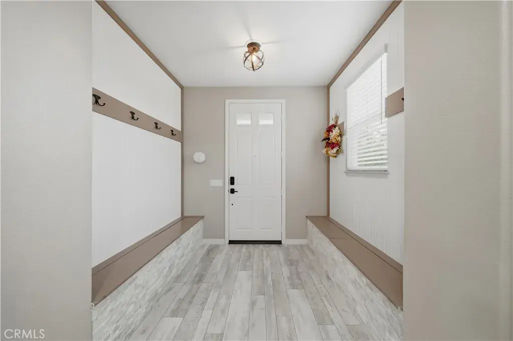 Beautifully updated home with solar located in the highly desirable Smith Ranch community of Wildomar— bordering Murrieta with easy access to freeways, shopping, schools, parks, and trendy dining! This turnkey residence offers nearly 3,000 sq ft of well-designed living space featuring 4 bedrooms and 3 full bathrooms, including a highly desirable MAIN LEVEL BEDROOM AND FULL BATH—perfect for guests, multigenerational living. Inside, you’re welcomed by a large mudroom with built-in storage and OPTIONAL 5th BEDROOM, currently being used as an office accented by elegant French doors. The renovated kitchen is a true showstopper, showcasing soft-close cabinetry and drawers, stainless steel appliances, granite countertops, and a designer backsplash. Seamlessly connected living spaces include a formal dining room, dining nook, and a spacious family room highlighted by a custom gas fireplace—ideal for both everyday living and entertaining. Tasteful upgrades throughout the home include custom interior paint, luxury vinyl plank flooring in the main living areas and bathrooms, and plush carpeting in all bedrooms. Upstairs, the primary suite features dual oversized closets, a cozy gas fireplace, and a beautifully updated en-suite bath with dual vanities and a custom walk-in shower. Additional highlights include an upgraded secondary bathroom and an upstairs laundry room complete with washer and dryer. Paid off solar system adds energy efficiency and long-term savings, completing this exceptional home that truly checks all the boxes. Welcome Home!