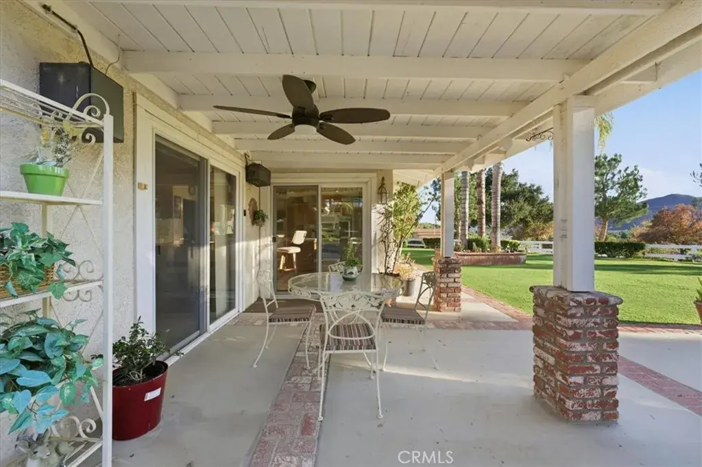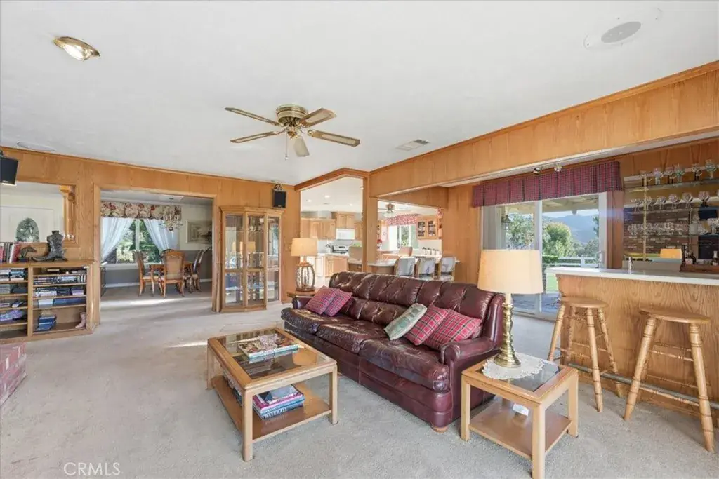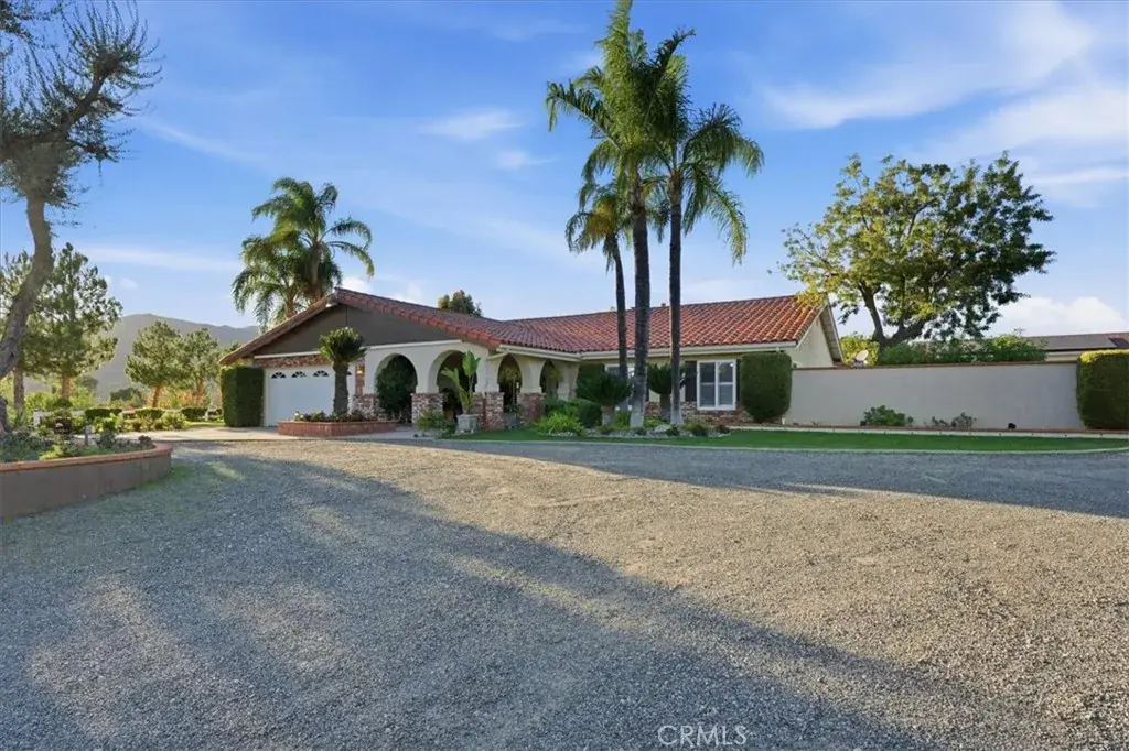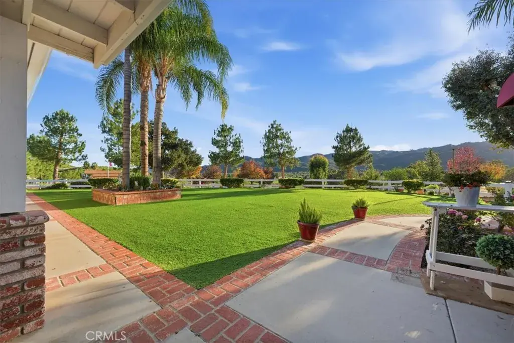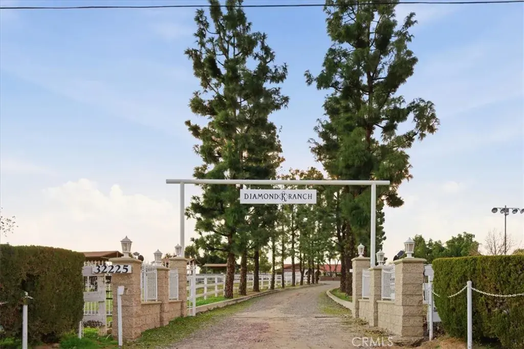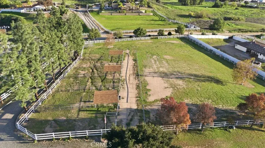 Perched atop a private hill with breathtaking views overlooking the Wildomar Valley, “Diamond K Ranch” makes a grand first impression with a private road and long, tree-lined driveway leading to the residence. Offered for the first time since 1989, this rare property includes an additional parcel totaling just over 3.5 acres of exceptional privacy and is fully equipped for a working ranch, featuring a 2,611 sq ft home with 4 bedrooms, 2 bathrooms, and an attached 2-car garage with stunning views from nearly every room. The meticulously maintained grounds showcase low-maintenance turf, an in-ground Pebble Tec pool, a gazebo with spa, garden beds, two large pastures, six fully fenced paddocks with shelter covers, four horse stalls with tack and feed room, a concrete wash stall, and a well-lit riding arena ideal for nighttime use. The home offers a spacious kitchen, wet bar, formal living and dining rooms, an easy-access circular driveway, and access to a detached 25×40 workshop/garage with high-clearance roll-up doors and power, while leased solar enhances energy efficiency. Fully fenced and secured behind an automatic gated entry, Diamond K Ranch offers privacy, peace of mind, ample space for RVs, trailers, and equipment, breathtaking panoramic views—including the chance to watch skydivers drift across the sky—and the rare convenience of country living just minutes from city amenities.
