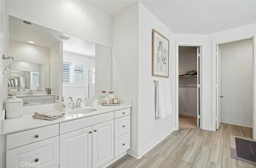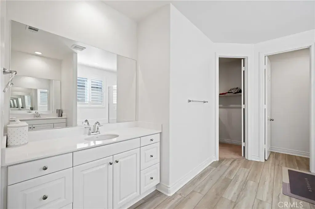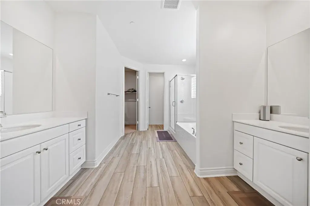 The Primary Suite Is A Luxurious Retreat Featuring A Soaking Tub, Separate Stall Shower, An Expansive Walk In Closet, And A Beautiful Neutral Color Palette Throughout. Interior Highlights Include Rich Upscale Wood Laminate Flooring, Plush Carpet, Custom Shutters, And Central Heating And Air Conditioning.