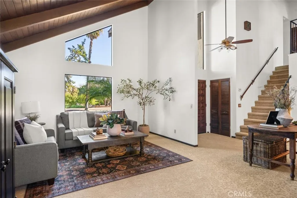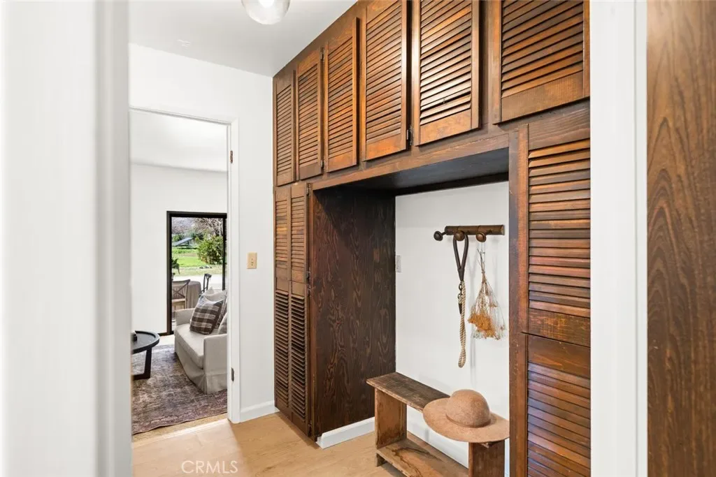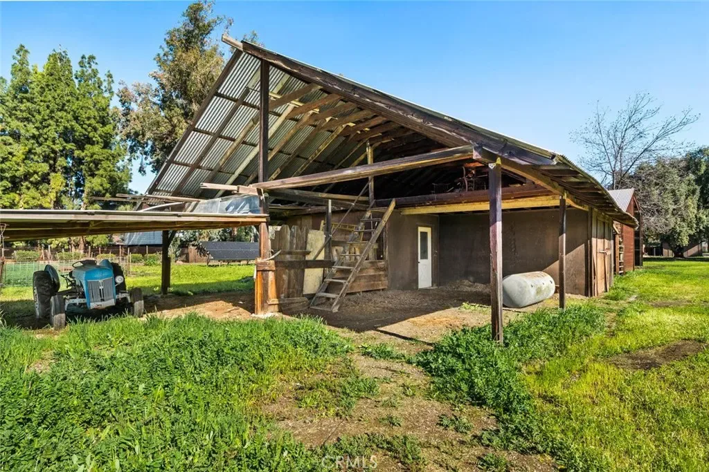 Outdoor amenities include two indoor shops, covered RV parking,covered stall area, a two-car garage, and a U-shaped driveway complete with a charming bridge and dry riverbed feature. The covered rear patio is wired for a hot tub. Approximately half an acre of fenced pasture is ideal for animals or 4-H projects. Apricot and mandarin orange trees, garden space, and mature palms complete this versatile country property.