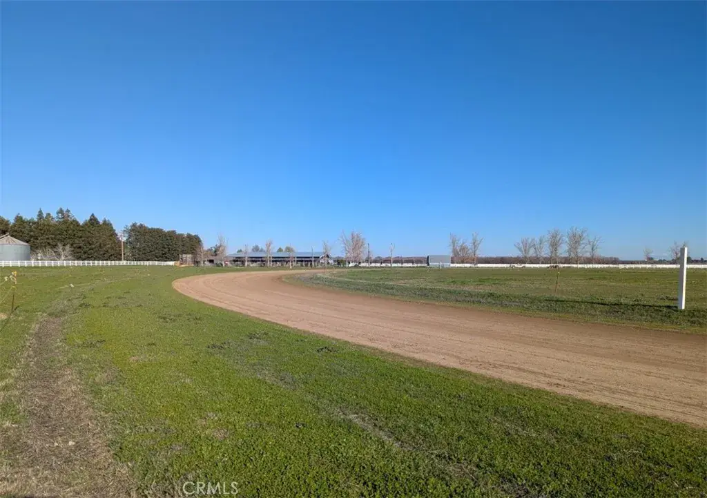 Great location and tons of potential! Property includes two assessor parcels, each 30.28 acres zoned Agricultural Transition Zone. The zoning, along with property’s proximity to Highway 162 and the Willows Airport, creates potential for division into smaller (10 acre +/-) parcels for residential estate type development, or could be utilized for orchards or row crops. Currently utilized as a horse training facility, with an emphasis on harness racing, the property has one large metal, “pole barn” type structure of approximately 120’x180′ dimensions. This building provides cover for two rows of horse stalls, one at the north end, and one at the south end. There are approx. 34 12’x12′ stalls, as well as storage. Also under roof is a concrete, in-ground circular exercise pool for the horses (complete with concrete ramp) and a Centaur FreeFlow Equinecisor. South of the pole barn are located separate “mare motels”, with 20 stalls and access to pasture. Directly east of the horse boarding facilities lie paddocks with piped in water, separated by white vinyl fencing. The remaining improvement is the oval, 5/8 mile training track. Remaining acreage of approx. 20 acres at the south end of the property has been dry land farmed for hay. There is a domestic well at the north end of the property which provides water to the horse stalls, paddock area and essentially all of the property except the hay field area to the south. Per seller, this well is approximately 250′ deep, with the pump located at about 120′. A new pump was installed approximately 4 years ago. An ag well located mid-property has holes in the casing and will need some work. There is slow/minimal output currently.