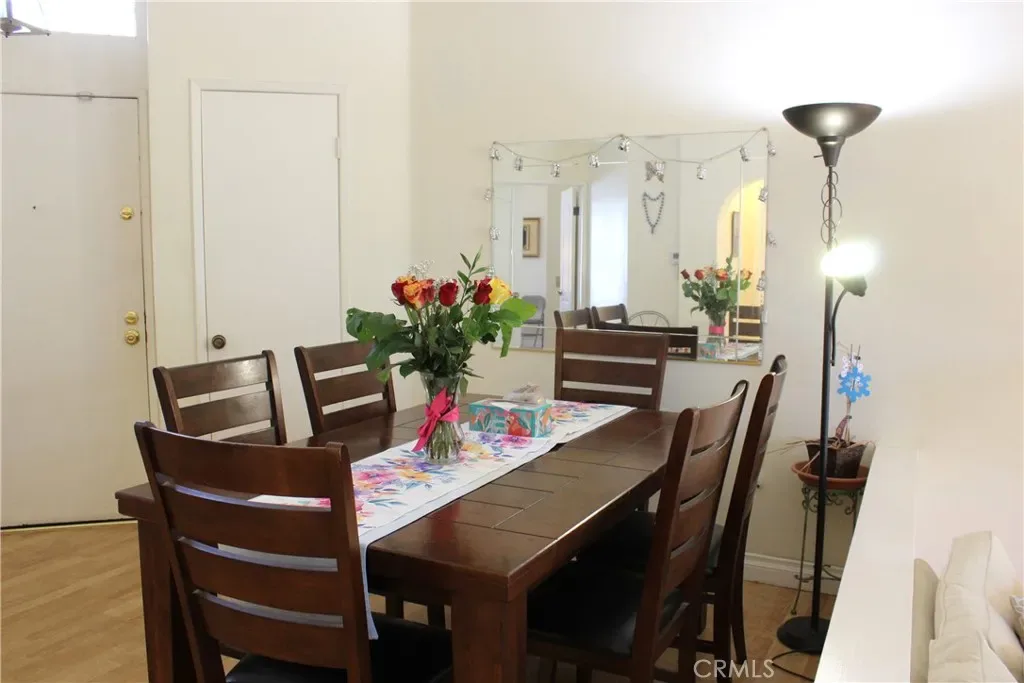 Welcome to this beautifully maintained 2-bedroom, 1-bath second-floor condo featuring soaring cathedral ceilings that create a bright, open atmosphere throughout. The inviting living room and primary bedroom both offer direct access to a private balcony, perfect for relaxing while overlooking the peaceful tree-lined grounds and sparkling pool area. The kitchen is thoughtfully updated with refurbished cabinetry, sleek new quartz countertops, a cozy breakfast counter, and ample storage space. Appliances include a refrigerator, stove, new dishwasher, and convenient in-unit laundry. The second bedroom enjoys abundant natural light and is ideally positioned near the bathroom and main living areas, offering both comfort and functionality. Located in a highly desirable Pine Creek community, residents enjoy resort-style HOA amenities including two sparkling pools, a relaxing spa, tranquil water-filled creeks, and lush landscaped grounds. The unit includes one covered parking space (#449) and one uncovered space (#437). With its move-in-ready condition, fantastic location, and easy freeway access, this condo offers the perfect blend of comfort, convenience, and value—an opportunity not to be missed.