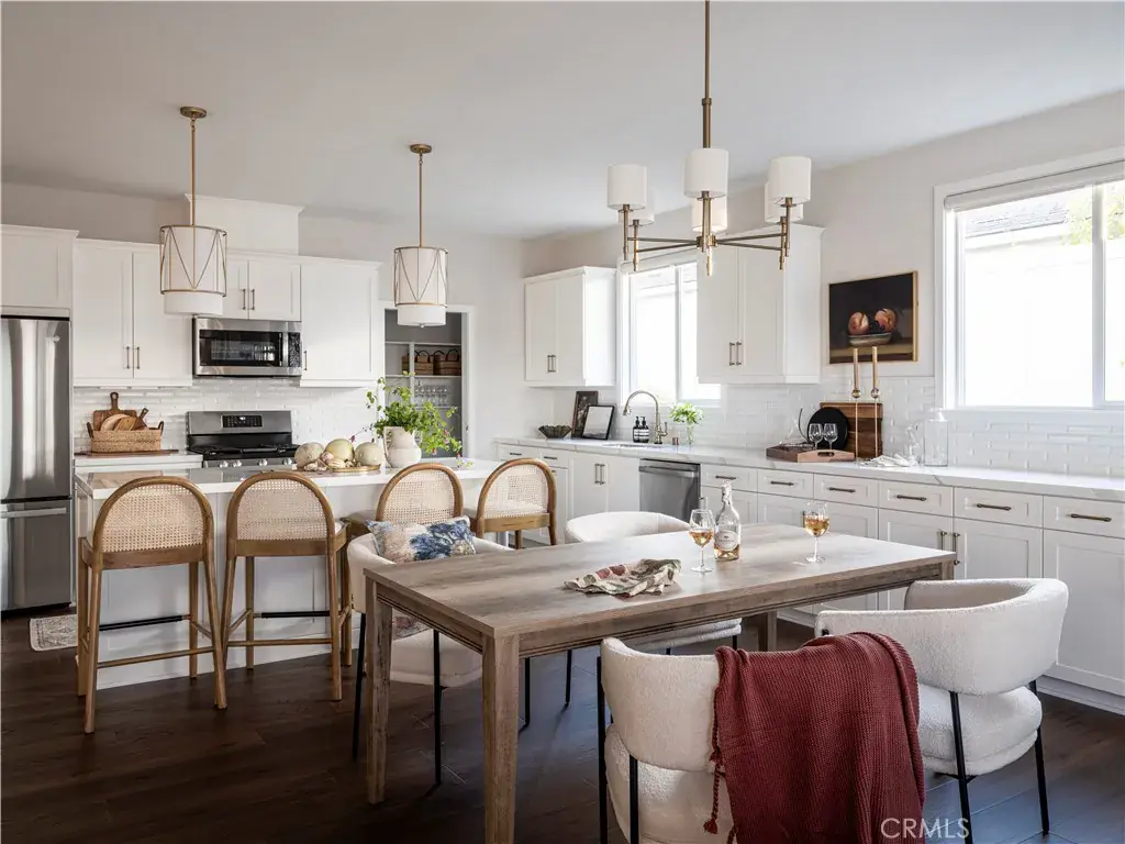 **Model Home** With over $226,000 in upgrades throughout. Don’t miss this final opportunity to live in the Luminary community and purchase a highly upgraded and beautifully decorated model home by Bobby Berk. It features three bedrooms, three bathrooms, and a versatile den, offering flexibility to fit your lifestyle. Open-concept layout. The kitchen is appointed with a GE Profile appliance package, white painted shaker cabinets with brushed bronze pulls, extended base cabinetry, quartz countertops, and a wrapped island. Additional highlights include a laundry room sink with cabinetry and luxury plank vinyl flooring in Tyro Walnut. Enjoy outdoor living under the aluminum covered patio.