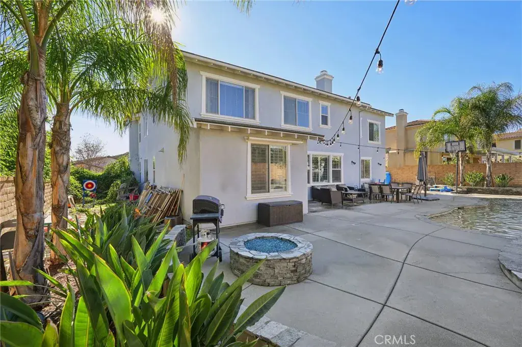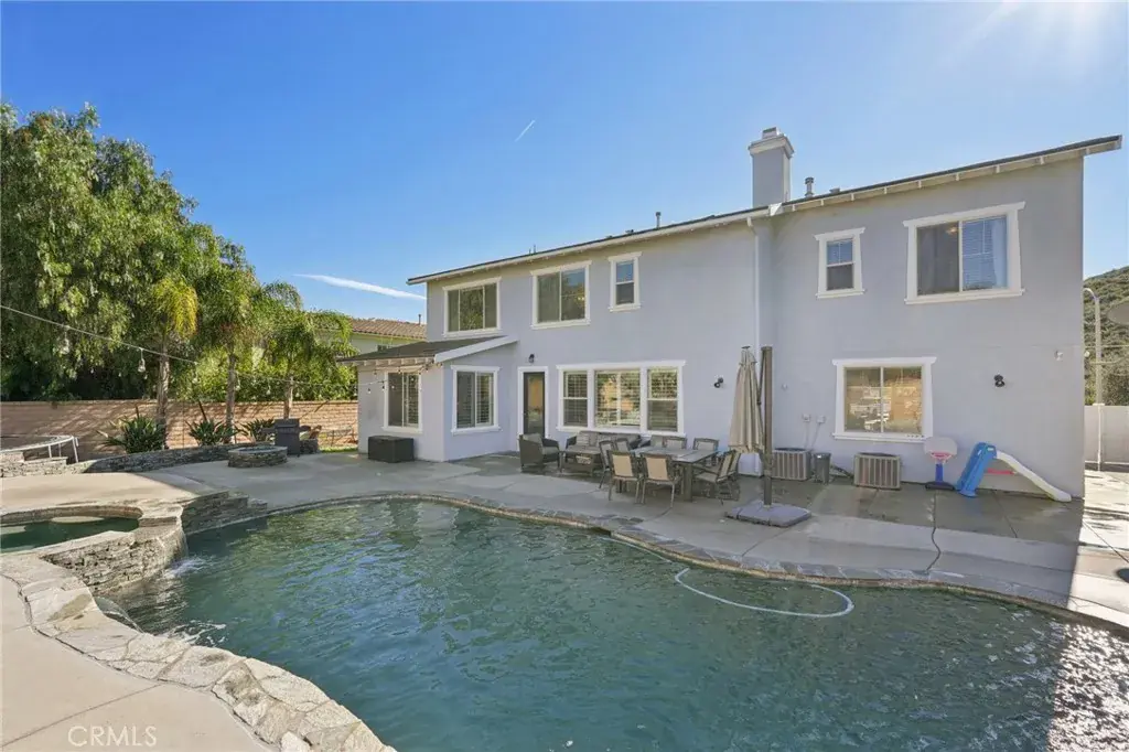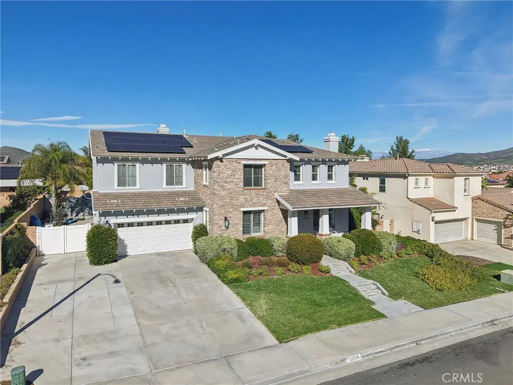 Welcome to your dream home! This stunning 6-bedroom, 4183 square-foot residence sits on an expansive 10,890-square-foot lot and offers exceptional indoor and outdoor living. The resort-style backyard is an entertainer’s paradise, featuring a saltwater pool and spa with a grotto, waterfall, and built-in slide, along with a firepit perfect for evening gatherings. Step inside to a formal living room highlighted by the first of two fireplaces. The main level includes a private bedroom with its own bathroom, ideal for guests or multigenerational living, followed by an oversized formal dining room. Wood flooring flows throughout the downstairs, complemented by wood shutters on the windows. The light and bright kitchen is beautifully appointed with quartz countertops, a large center island, stainless steel appliances, and a double oven. A casual dining area with abundant cabinetry sits just off the kitchen and opens to the spacious family room anchored by the second fireplace. A generous laundry room completes the main level.