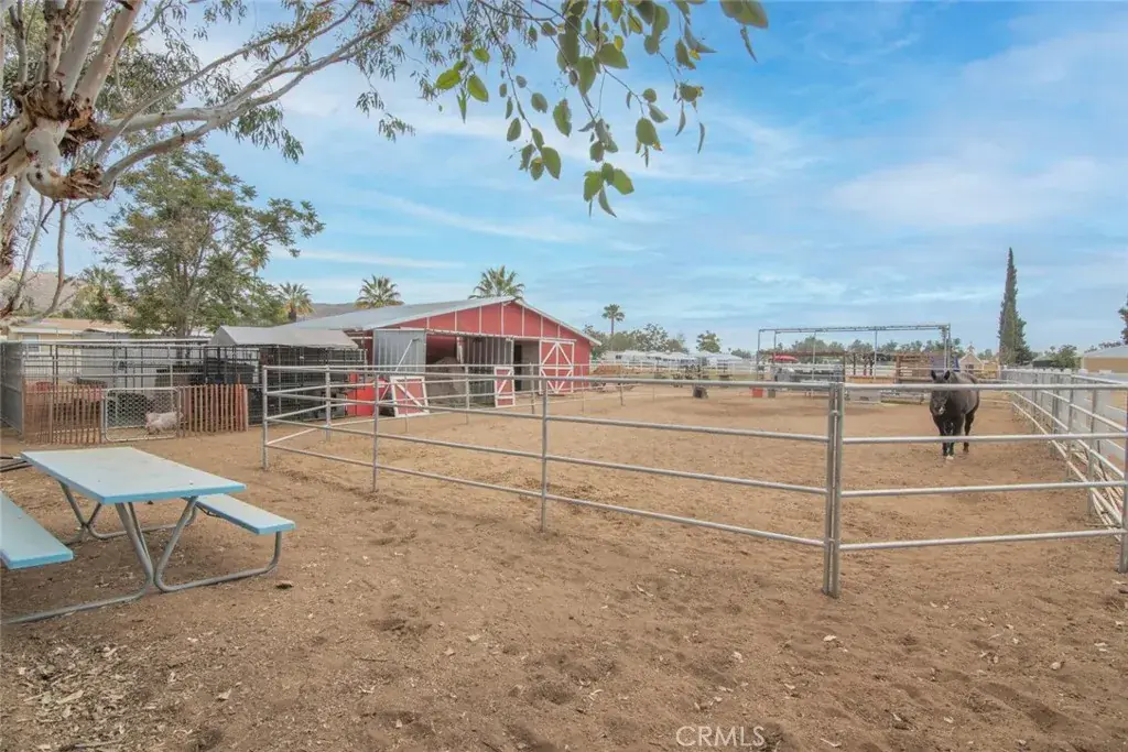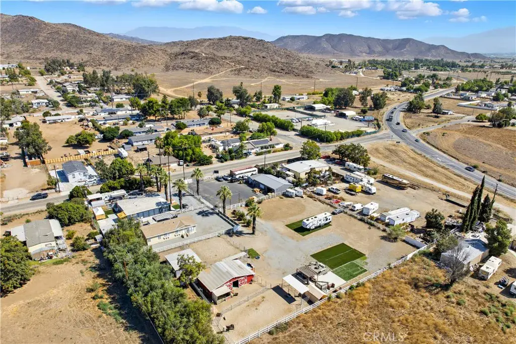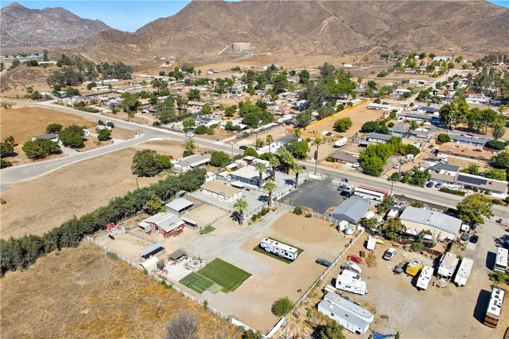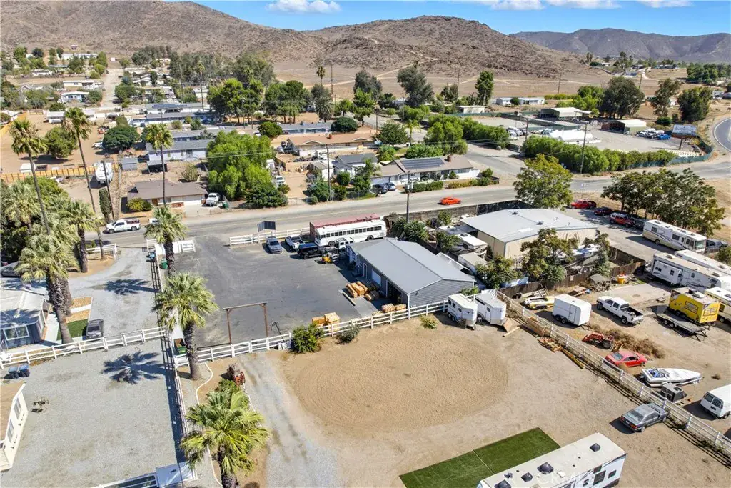 Discover a rare multi-use ranch property in the heart of Old Town Winchester, offering the perfect blend of country charm and modern versatility. Situated on 1.63 fully fenced acres with 3-rail farm fencing, this property is designed for both work and play. The remodeled 2-bedroom, 2-bath manufactured home provides comfortable living, while full RV hookups add extra convenience for guests or travel-ready lifestyles. A massive 50×30 warehouse with a brand-new paved parking lot and an adjacent 16×24 office space create ideal opportunities for running a business, storing equipment, or pursuing hobbies. Entertain with ease in the expansive outdoor area featuring multiple shaded coverings, a cozy fire pit, and a fully equipped Lion BBQ island. Equestrian enthusiasts will appreciate the beautifully maintained red brick barn with three 11×11 stalls, a storage room, and custom iron gates, along with a covered corral for smaller animals. The property also boasts a 90×80 oval corral, a 72×37 turnout corral with sand, and a 4-stall mare motel complete with a fly system. Whether you’re looking to host gatherings, manage a business, store your toys and equipment, or care for your animals, this property delivers unmatched flexibility in a prime location.