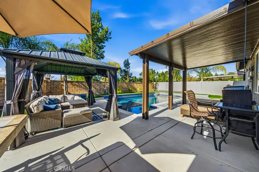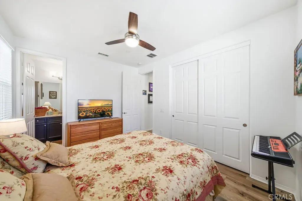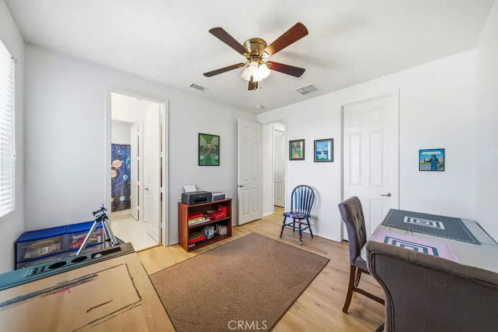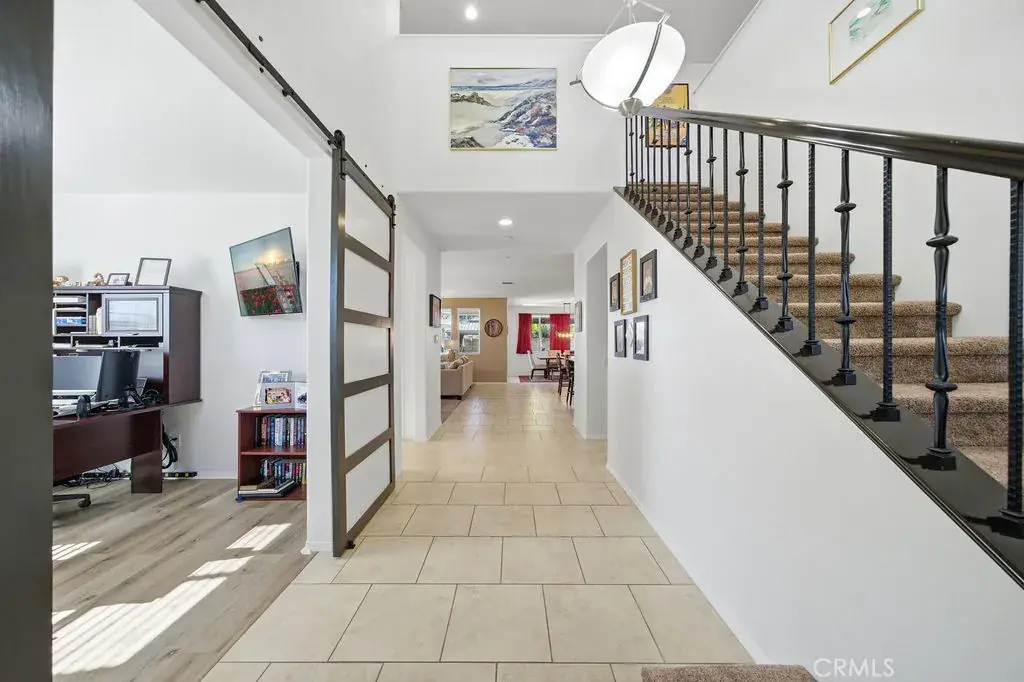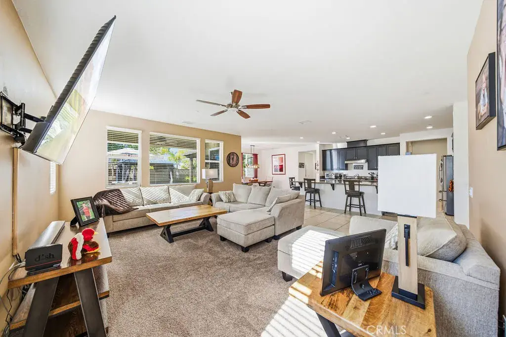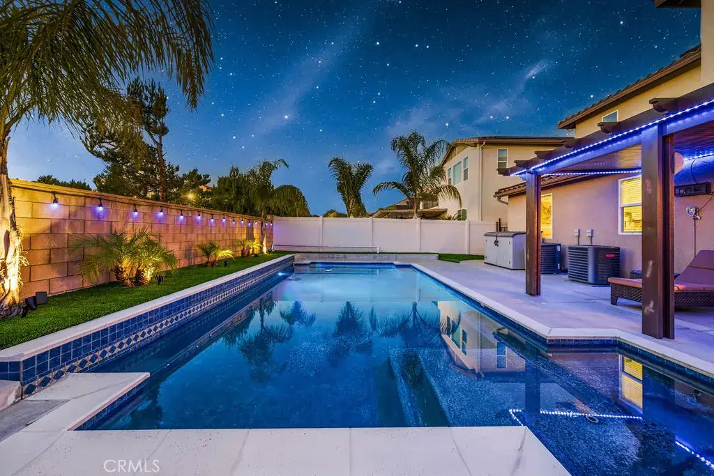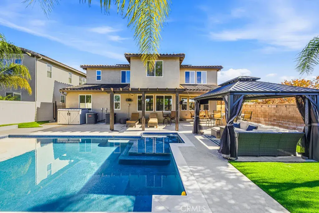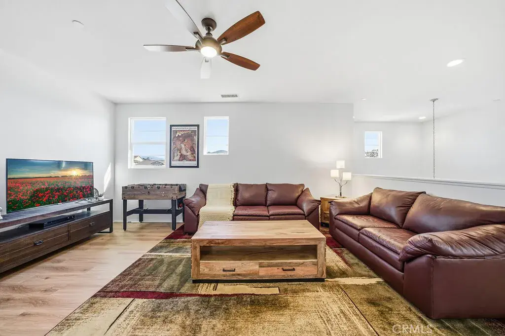 Welcome to 35853 Sea Smoke St, a beautifully upgraded Winchester home that offers the perfect blend of modern comfort, energy efficiency, and relaxed Southern California living. The interior showcases a bright, open floor plan filled with natural light, enhanced by coated high-efficiency windows and new luxury vinyl flooring throughout, creating a clean, modern, and inviting atmosphere. The main level features a full bedroom and full bathroom, ideal for guests, extended family, or a private home office, while the kitchen opens seamlessly to the living and dining areas for effortless everyday living and entertaining. Thoughtful upgrades include solar, a whole-home water softener system, and a whole-house fan, all designed to improve comfort and long-term efficiency. Upstairs, you’ll find spacious secondary bedrooms and a generous primary suite designed for rest and relaxation. The home also offers a 3-car tandem garage, providing ample space for parking, storage, or a home gym. Outside, the low-maintenance backyard is a true retreat, featuring premium turf, custom hardscape, and a sparkling heated pool with solar heating, creating a private, resort-style setting perfect for entertaining or enjoying Southern California’s year-round sunshine. Conveniently located near parks, shopping, dining, and Temecula wine country, this home delivers an exceptional lifestyle and is ready to be proudly called your own.
