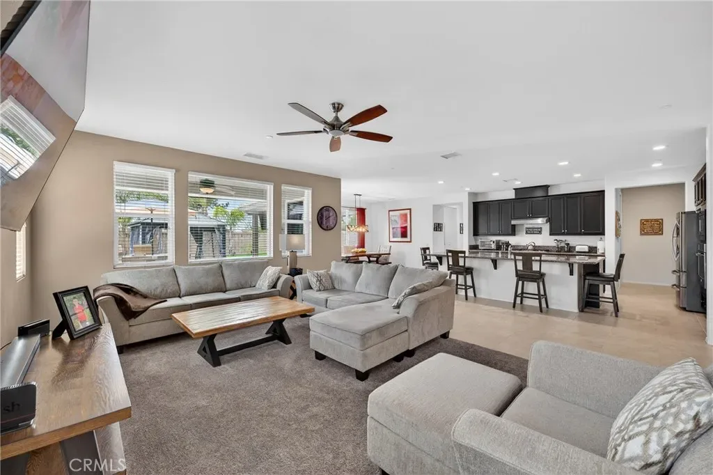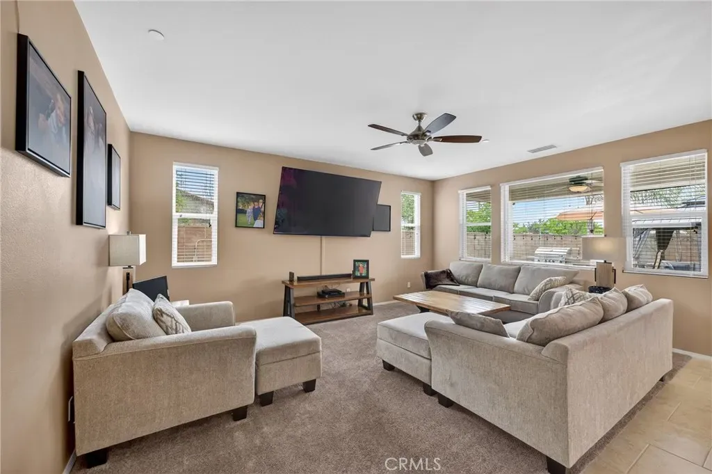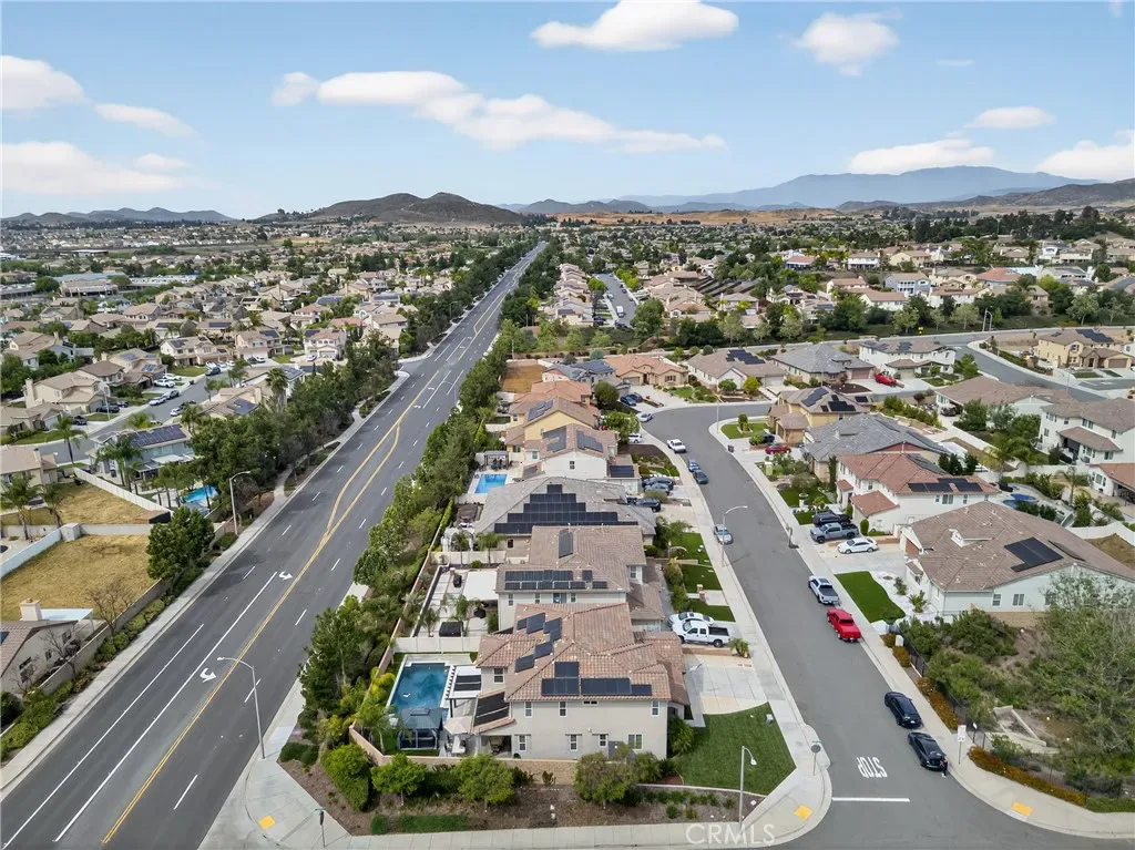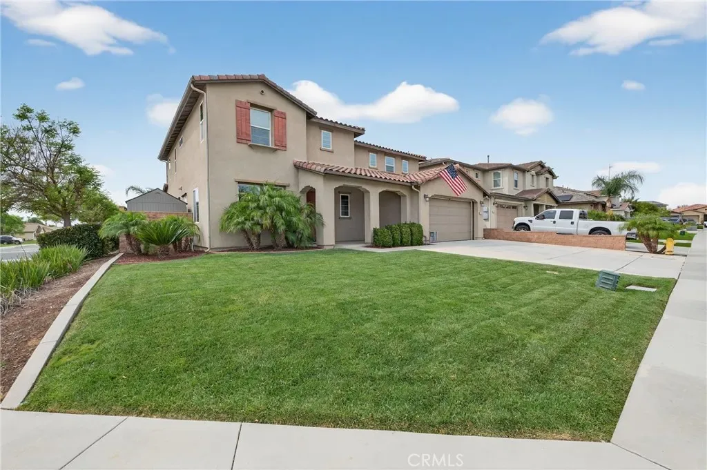 Location, Location Welcome Home to your Luxury Home, with your Dream Backyard. Your Own Oasis, an Entertainers Dream home, in the highly sought after neighborhood of Winchester Ca, in the heart of French Valley, this is a K. Hovnanian Model Home, Stunning, two-story open floor plan, on a corner lot in Vineyard Heights, No Neighbors Behind Backyard. There are upgrades galore, pool solar comes with the home, security pool fence removable, and pool alarm, very large walk-in pantry, butler’s pantry, custom barn doors for main floor office, whole house fan, quiet cool system, two patio covers, one of the patio covers is a Aluma-wood patio cover. You must see all upgrades. You drive up to the beautiful curb appeal, walk up to the very large porch, enter through the entry door, into the grand foyer, cathedral high ceilings, natural sunlight coming through the windows, and you see the custom-made barn doors, they go into the main floor office, there is a main floor bedroom & bathroom with a pool view, and a main floor hallway storage closet, also a main floor mudroom, before going out to the garage. Then you go up the staircase, which leads you upstairs, includes, four more bedrooms, and three walk-in closets, large loft, and large laundry room, with a three-car tandem garage, renovated part of garage, is another office now from 2020. Your own backyard Oasis is a Entertainers dream, with a sparkling blue pool, and lighting, built in BBQ, two patio covers, one with patio set, and fan ,one Aluma wood patio cover, standing gazebo with netting, also the lawn is low maintenance artificial grass. This spacious two-story home has living space of 3,549 square feet, with solar panels. This home highlights Chefs Kitchen with large granite Island, shaker cabinets, with, storage, stainless steel appliances, microwave oven, five burner stove, double ovens, range hood, a large butler pantry, and a large walk-in pantry, open floor plan into living room, dining room. Off the chef’s kitchen, main floor bedroom and bathroom, and media room. Upstairs is the Primary Bedroom Suite, with fan, and Primary Bathroom, double vanity, soaking tub, walk-in shower, and lighted walk-in closet. Prestigious Temecula Unified School District Elementary Susan La Vorgna, Rancho Bella Vista Middle, and Chaparral High School. Close to Parks, walking distance to Sheffield Park. Close to all Shopping.