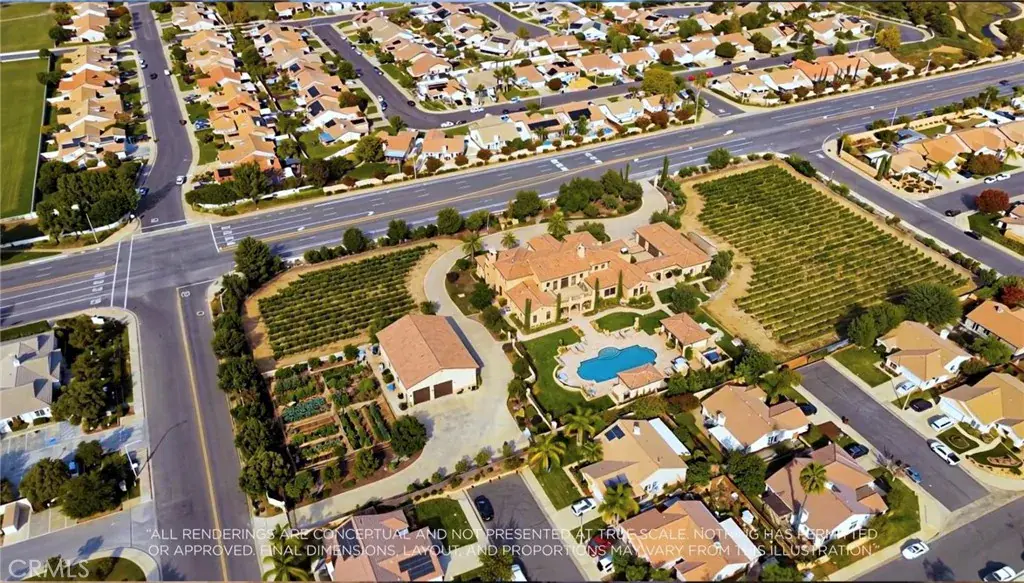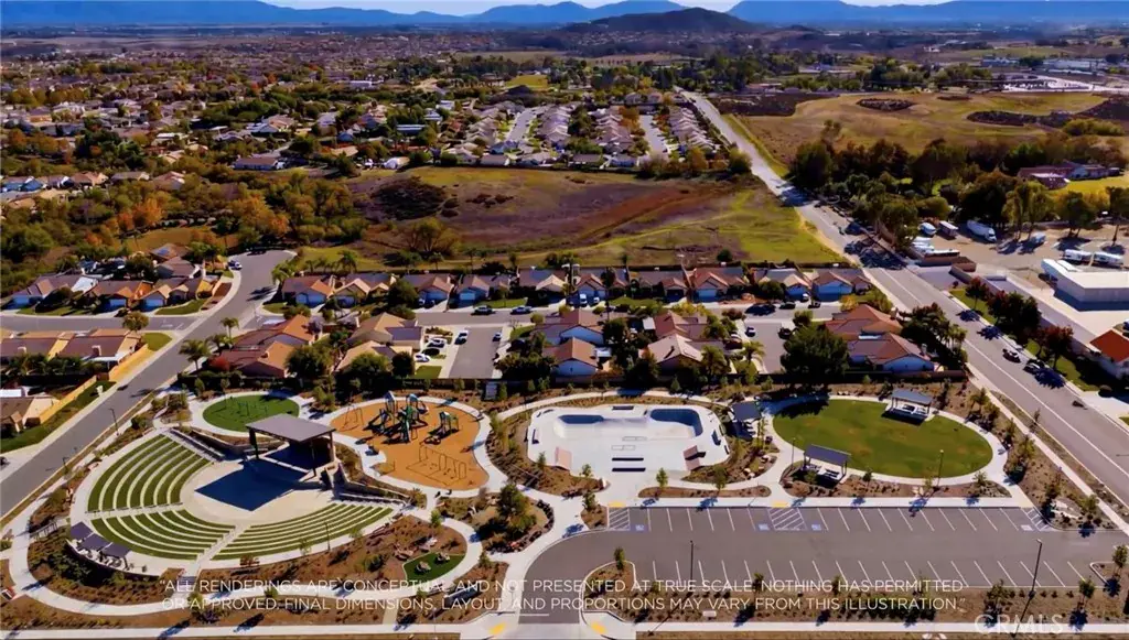 environment, looking at the Sunset Ranch for the next city or county development project, or for the possibility of commercial revenue, The Sunset Ranch on Benton is centrally located on Benton Rd, the closest thing to a “Main Street” in French Valley. Benton Rd runs through French Valley, becoming Clinton Keith at the 79S, eventually hitting both the 215 and 15 Freeways.The property is also close to housing, shopping, and commercial development, and is mostly flat and usable. It sits in the heart of French Valley, on the Main Street, in an unincorporated community of Winchester, California. This area sits in the highly desirable Temecula Valley Unified School District.Here are some possibilities to consider if rezoning is achieved through the county. Renderings have been provided in the pictures. Option 1: “Benton Park” would follow the layout of several 5-acre parks throughout the country, with an amphitheater, playground, walking trails, and a skate park. This would be a great place for French Valley residents to gather with friends and family, or for community events. I’d love to see the County of Riverside, or the City of Temecula, make this possible. Option 2: I call it “Benton Headquarters”, a shopping center like Vail Headquarters in Southern Temecula, which features several smaller local shops, bringing back opportunities for residents, local shopping, food, fun, performances, and music. Building community and memories, while generating commercial revenue for ownership. Or Option 3: “Housing” Keep this as a single-family home for one family on a large lot, or multiple families, subdividing into 6 lots, each about ¾ of an acre. These homes would feature Temecula Valley Schools, large flat usable lots, and would be walking distance from parks, restaurants, and shopping. Perfect for a family compound, or a smaller developer. For a property like this one, the possibilities are endless. Everything would have to be approved, permitted, and rezoned with the county, but an opportunity like this only comes along – once in a great while…It would be nice to see something good for French Valley, and the people who live here.