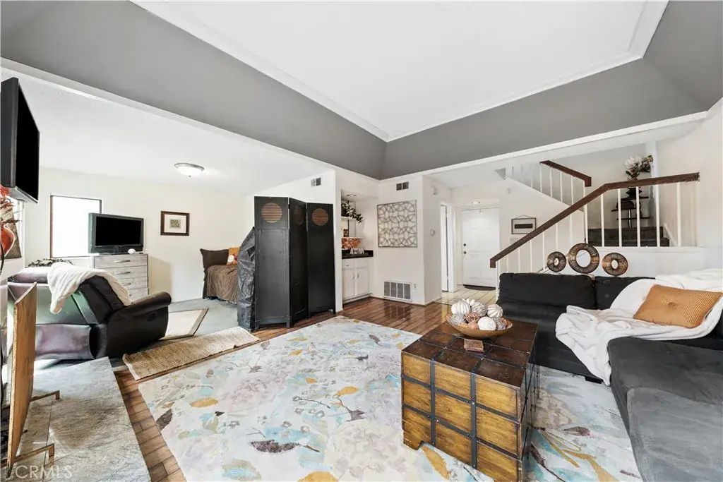 This two-story, three-bedroom 2.5 bath townhouse is a rare find!! With features like an entry hall, two French doors, vaulted ceilings in the living room as well as the master bedroom, a balcony off the master, and a small enclosed backyard with high walls that are perfect for children to play safely, this 1500 square feet of living is next level. The master bathroom has double sinks! Other amenities include a two-car garage, two walk-in closets, and a gorgeous and mature lemon tree in the backyard. If you are looking for different, this unit has that and more. As an added bonus, this unit is an end unit with limited mountain views for those lazy mornings. Community amenities included pool & hot tub. All information deemed reliable but buyer(s) to perform due diligence in verifying information, HOA fees and or assessments.