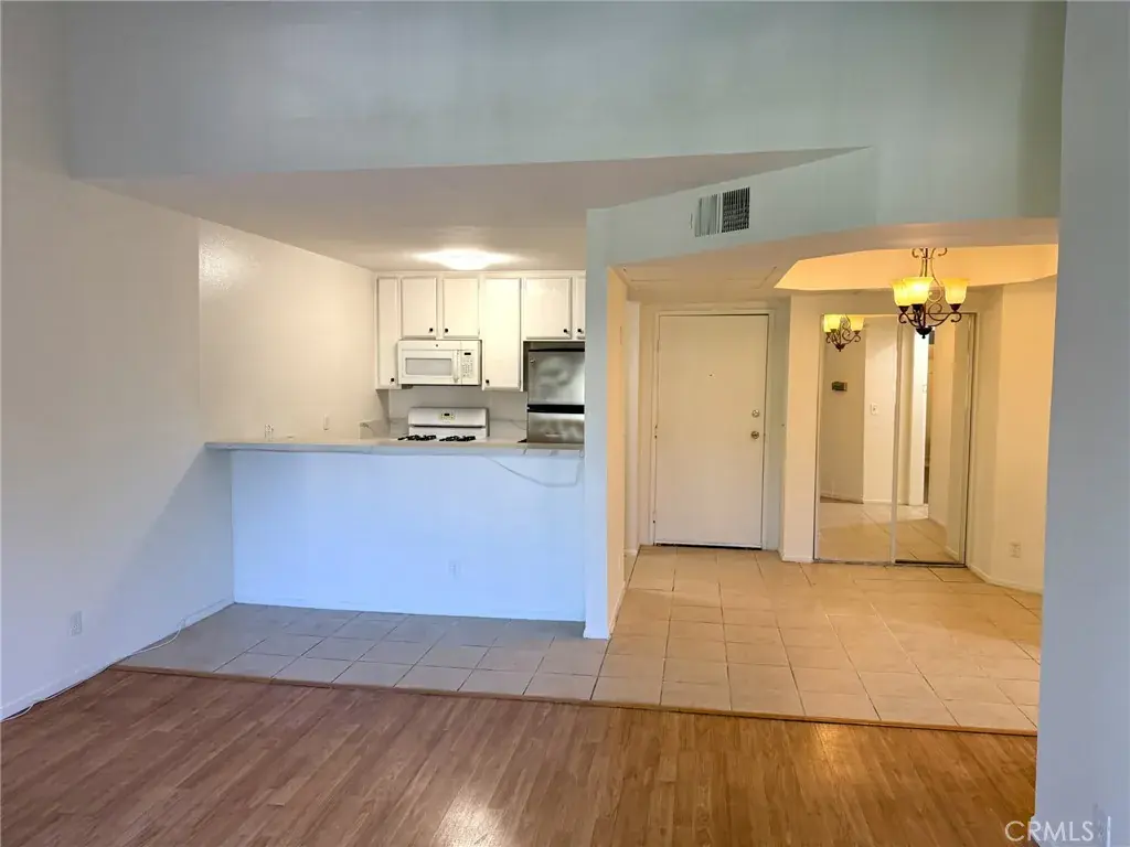 This incredible 1+1 freshly painted penthouse unit with vaulted ceiling is very bright with views of the trees and close proximity to area shops and restaurants. Great complex with a lot of trees and greenery. Spacious living room with fireplace and large balcony with storage. Open kitchen with brand new Quartz counter tops and breakfast counter. Dining area. Primary bedroom with vaulted ceiling and walk-in closet. Washer and dryer hook-ups in the closet. Full hallway bathroom. Other features include wood and tile floors, plenty of closet space. Small complex with pool and spa. Gated garage with 2 car parking. Plenty of guest parking. Prime location.