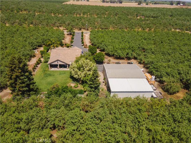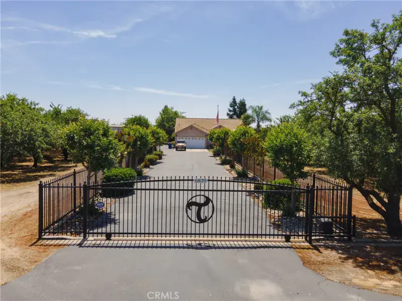 Large Almond Ranch for sale! Featuring a custom home offering the perfect blend of luxury and functionality. The main estate is gated for privacy and features a grand foyer entrance, setting the tone for the spacious, high-ceilinged interiors. The home boasts 3 bedrooms, 3 baths, and sits on 18 Acres of land! Designed with elegant details, including tile roofing, a beautifully landscaped front yard, and a well-maintained driveway, security is top-notch with integrated cameras throughout. Step into the heart of the home, where the kitchen shines with its tile flooring, granite tile countertops, and a full suite of high-end stainless steel appliances: a gas stove, commercial-grade hood, trash compactor, dishwasher, and a convenient island with double sinks. A walk-in pantry provides ample storage, while double French doors lead out to the backyard. The family room is perfect for entertaining, featuring high ceilings, a wet bar, and wine racks. The bedrooms are generously sized with plantation shutters, double closet doors, and plush carpet. The master suite, boasts a private side wing for the oversized bedroom with carpet, ceiling fans, and surround sound, creating an ideal retreat. The master bath offers a jetted tub, a large walk-in shower with a steamer, double sinks, tiled counters, and an expansive walk-in closet. The garage accommodates two vehicles and includes additional storage cabinets for convenience. The backyard is an outdoor oasis, complete with a large covered patio, stamped concrete, and an automated sprinkler system to keep everything lush. For those in need of additional space, the property includes a separate all-metal shop with two large bay doors (13×10 ft), ideal for various projects. Additionally, there’s a 40×50 shed, a double pump domestic well (390 feet deep), and 13-year-old almond trees. For extra versatility, a converted studio serves as a guest suite or game room. It includes a full kitchen with a gas stove, a full bath with a walk-in shower, and a bedroom with a walk-in closet, making it a perfect independent space for visitors or extended family. This property offers both the charm of rural living and the modern amenities for comfort and convenience, all within a peaceful, gated setting.