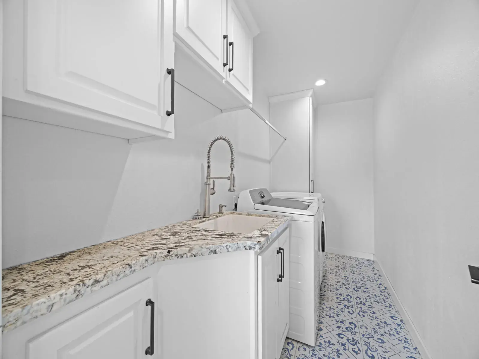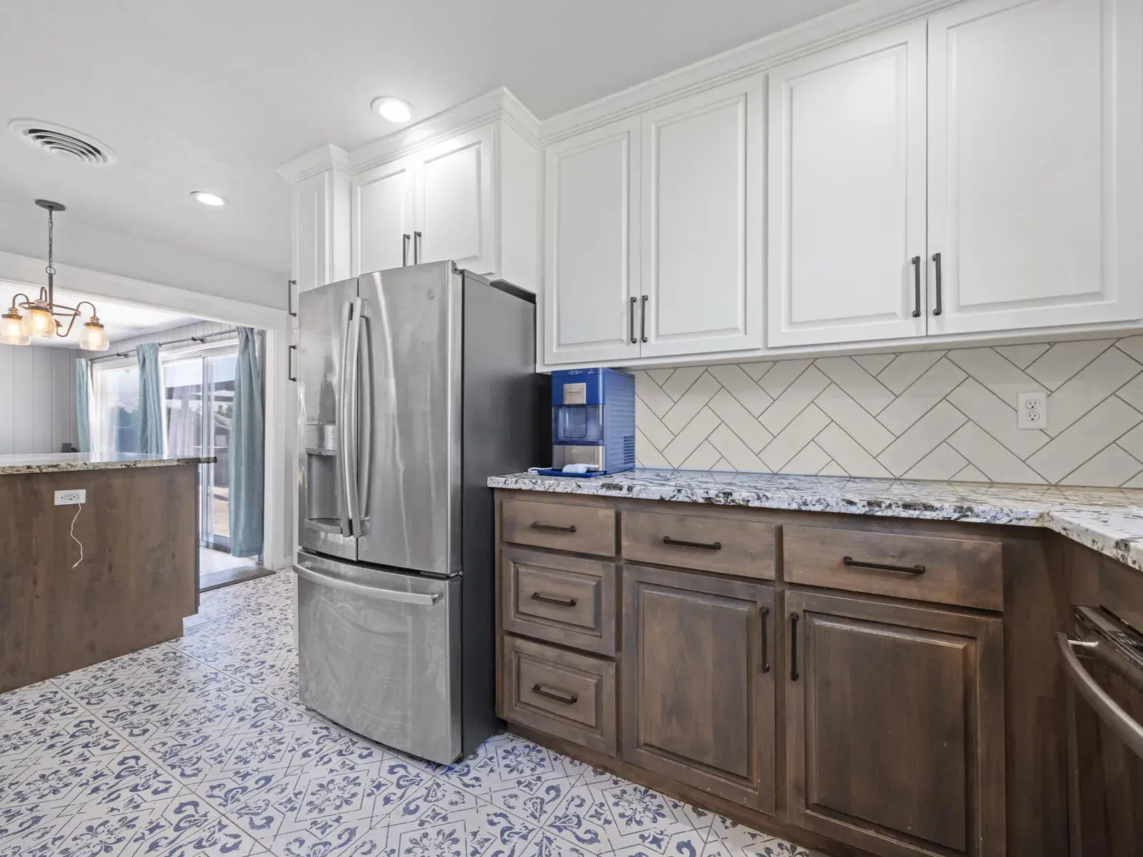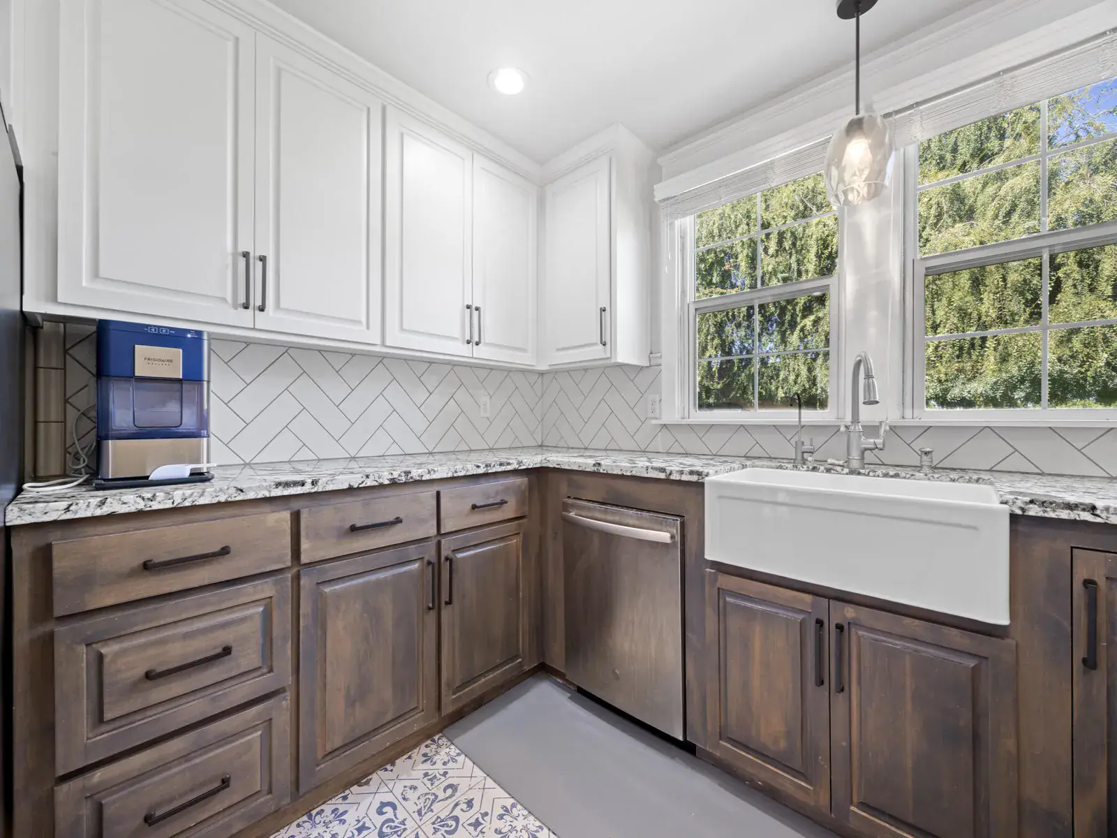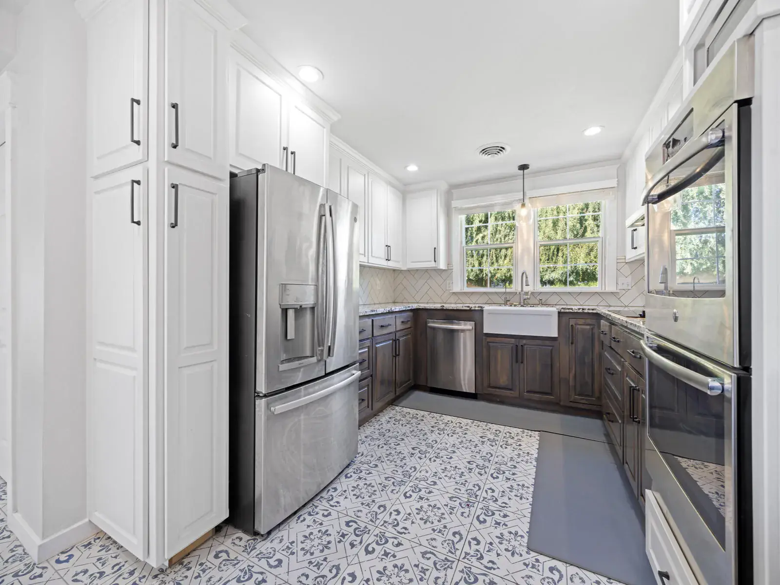 Step inside to find an airy living room, cozy family room, formal dining room, and a convenient mud room—plenty of space for everyday living and entertaining. The recently remodeled kitchen is a chef’s delight, featuring granite countertops, dual ovens, custom cabinetry, tile flooring, and stainless steel appliances.