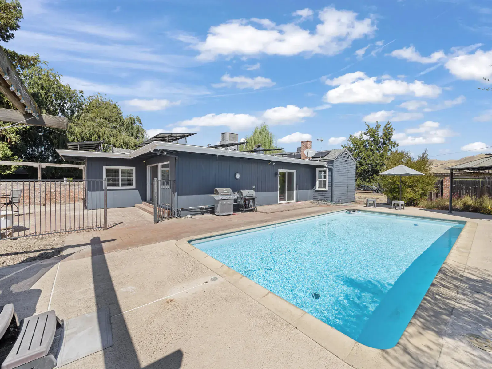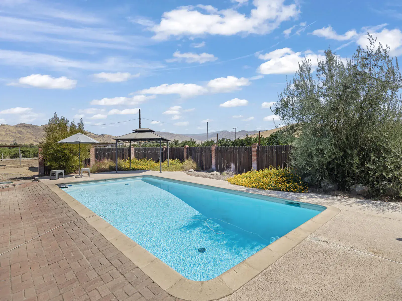 Situated on a generous 1.08-acre lot, the backyard is designed for fun and relaxation with a crystal-clear swimming pool, spa, private fencing, and a large patio—perfect for gatherings and outdoor entertaining. A detached 3-car garage and plenty of additional space make this property ideal for car enthusiasts, a workshop, or storing farming equipment. Horse lovers will also appreciate the room available for equestrian use.