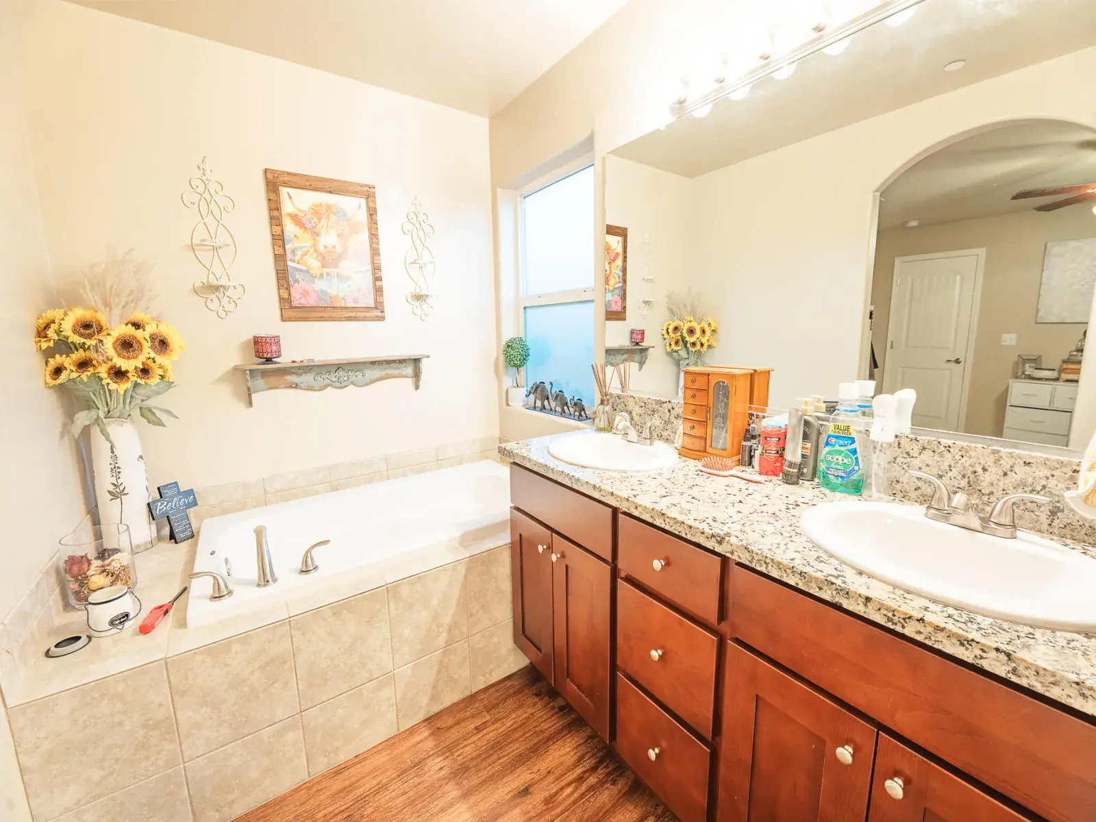 Welcome to this stunning home featuring vaulted ceilings and abundant natural light. The spacious, open-concept kitchen is perfect for entertaining family and friends, seamlessly connecting to the living and dining areas.