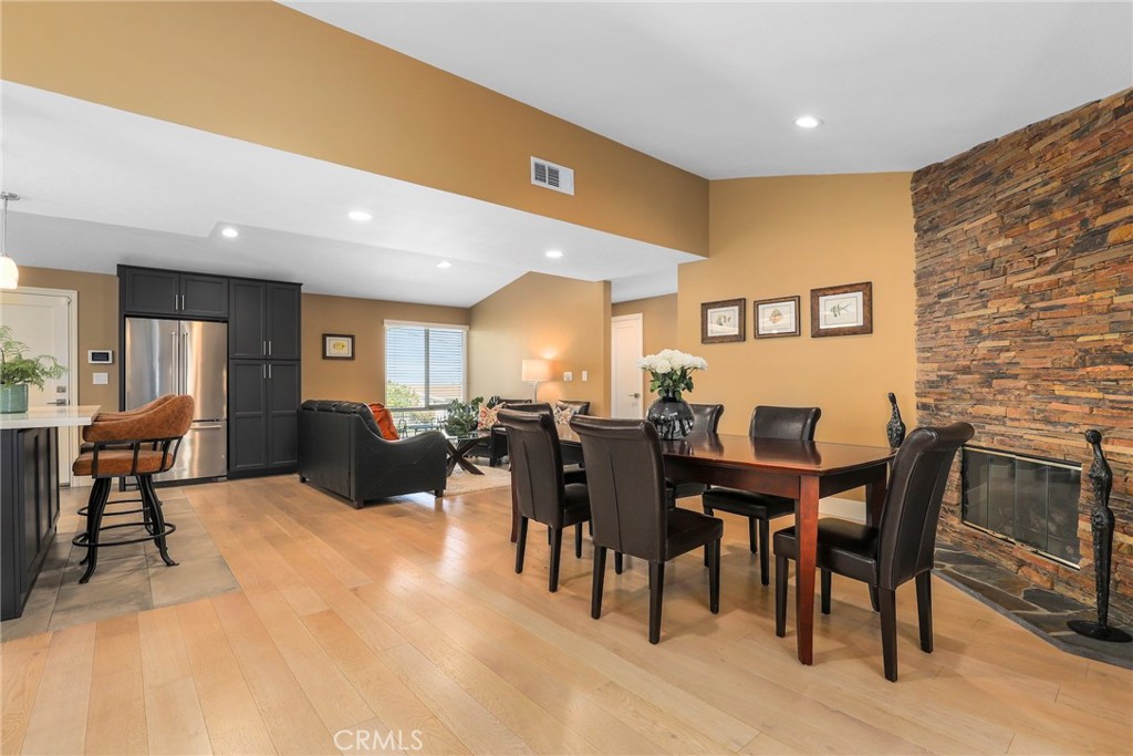 Bright, open-concept layout with vaulted ceilings, abundant natural light, and seamless flow between the living room, dining area, remodeled kitchen, and expansive family room — ideal for entertaining.