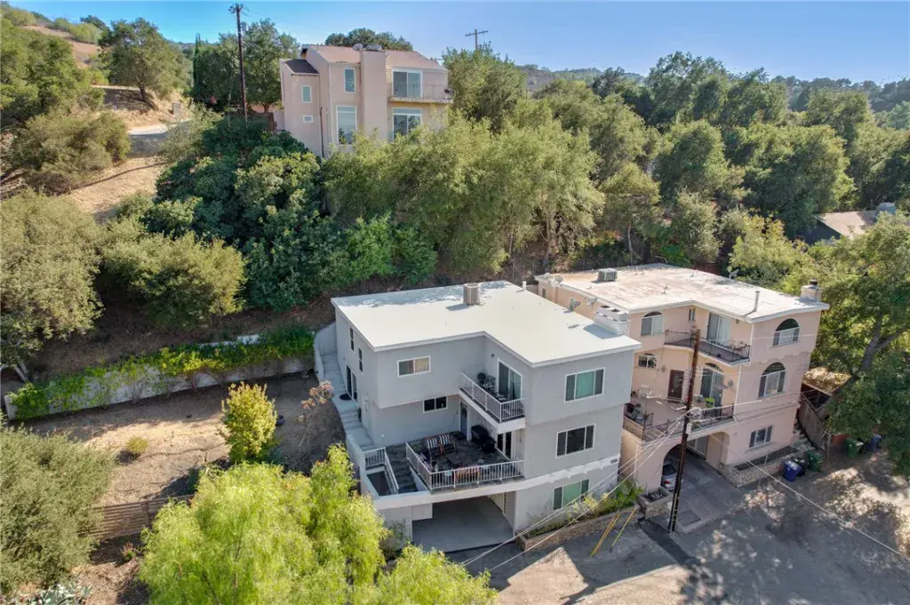 Do you like the tranquility of being in the outdoors? If so, then this home is for you! Located on a quiet cul-de-sac street surrounded by lush trees and just a stone throws away from incredible hiking trails that will take you to Mulholand while you enjoy all the beautiful mountain scenery. This large 4-bedroom 3 bath home sits on 2 separate parcels with separate APN’s giving you plenty of space to possibly build an ADU or other possibilities. There are plenty of outdoor sitting areas for you to entertain and take in the incredible views from the large porch. The home has high ceilings, newer windows and doors letting in all that natural light. there are 2 separate living rooms giving you ample space for entertaining. The home has 2 fireplaces, 1 in the living room and another in the large primary suite. all 4 bedrooms are on the upper floor with a remodeled bathroom between bedrooms and a remodeled bathroom in the primary suite with large walk-in shower and soaking tub. there are dual sinks vanities a walk-in closet and a balcony with incredible mountain views, perfect for those relaxing mornings. Connected to the living room is a dining room that is right off the kitchen. Adjacent to the kitchen is the laundry room with a door that leads out to the side property. The adjacent property has sprinklers as well as a drip irrigation system and a wood fence. The 384 square foot bonus space on the ground level has dual entry doors and would make a great office space, studio, workshop or a possible rental unit. Come see what this fabulous home has to offer.
