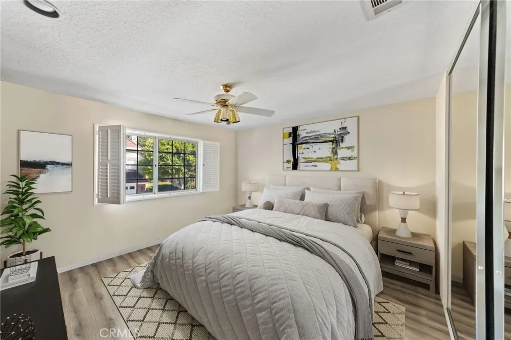 Gated townhouse located in the heart of Woodland Hills. Wood flooring throughout the house, this multilevel unit is designed for the comfort and practicality. The living room boasts large windows with plantation shutters that encourages natural light. The dinning room is adjacent with direct access to the parisian-inspired kitchen. The kitchen is designed with a black and white palette color theme, this kitchen is functional for all of your cooking needs. The stainless steel appliances with plenty of cabinetry for storage give all you would want for a glamorous kitchen. As you walk upstairs you enter the master bedroom and oversized master bath with walk-in closet. The upstairs is complete with one additional bedroom, a bonus room, plus a bathroom. This location has it all being only miles away from the best shopping, dining, and attractions Woodland Hills has to offer.