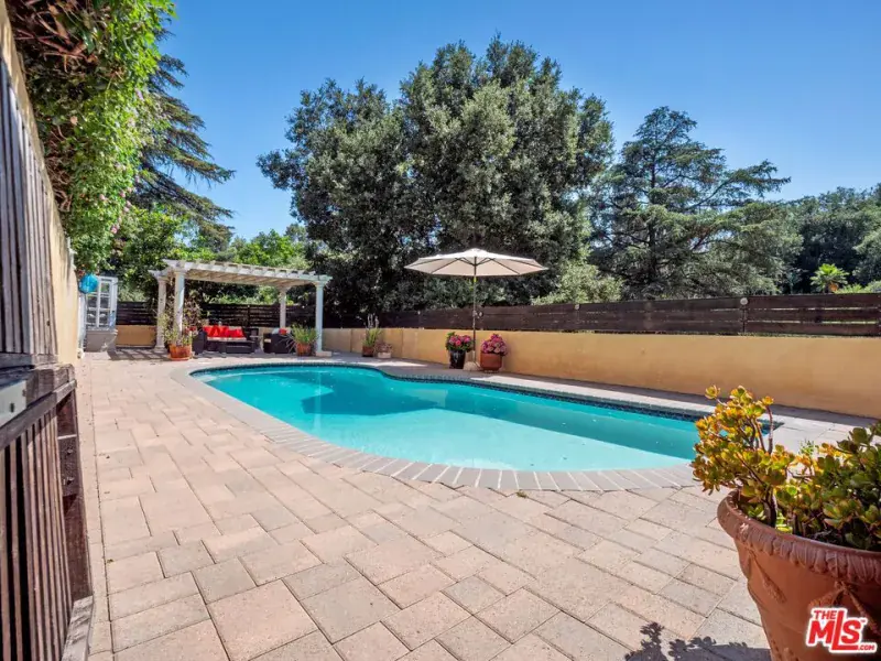 Welcome to this upgraded 4-bed, 2-bath entertainer’s pool home in Woodland Hills, featuring stunning views and an electric gated entry. Step into the inviting foyer that leads to the family room, boasting an upgraded fireplace with a wood mantel, wood vaulted ceilings, upgraded flooring and a slider opening to the side yard. The living room flows into the dining area, both filled with natural light from numerous windows showcasing beautiful views. The kitchen is equipped with stainless steel appliances and stunning cabinets with pull-outs, granite counters with custom backsplash and a breakfast nook offering picturesque yard views and lots of storage. The first level also includes two bedrooms, a bathroom, and a laundry area. Upstairs, you’ll find ample natural light, upgraded flooring, two additional bedrooms with walk-in closets, and a remodeled bathroom. The entertainer’s yard features a built-in BBQ, replastered sparkling pool with newer tiles and saltwater chlorine generators, newer HVAC, pergola patio cover, pool house, waterproof decking, recently stucco exterior and abundant storage throughout the property. Close proximity to Malibu Beach, Commons in Calabasas, The Village in Topanga, Topanga Social, Ventura Blvd, shopping, restaurants, and more! This home has it all and is ready for its new owner to make it their home!