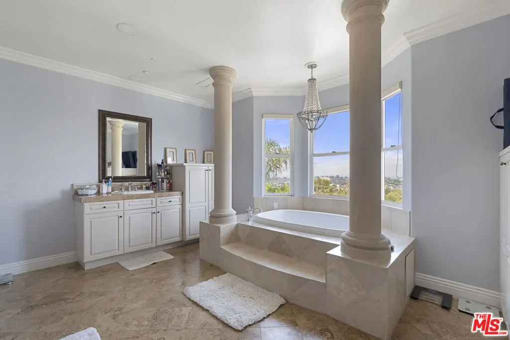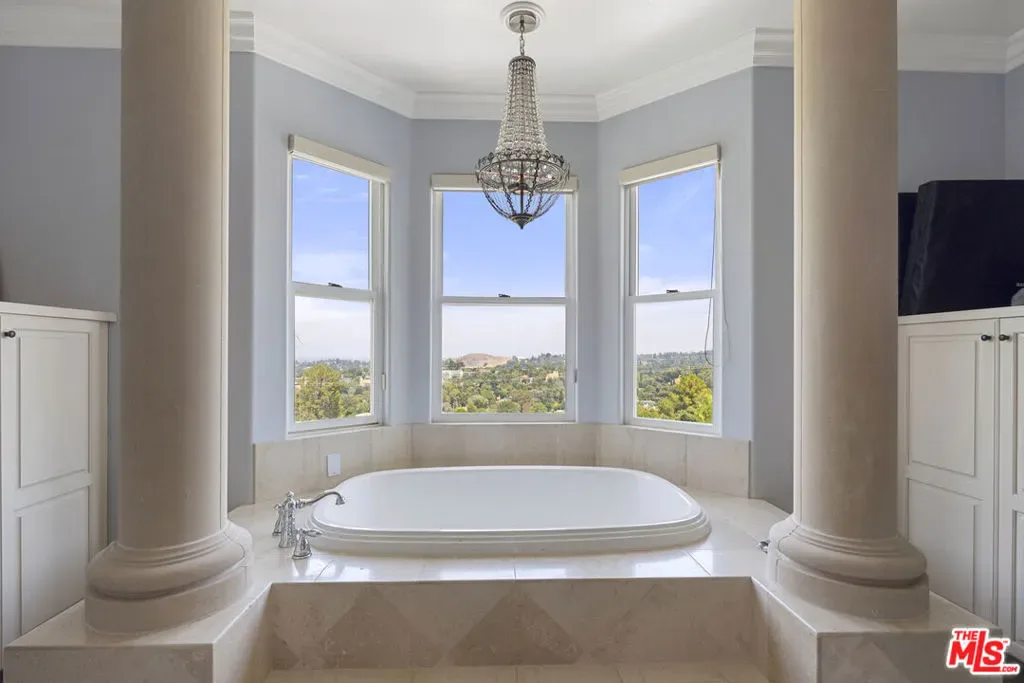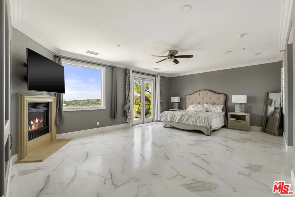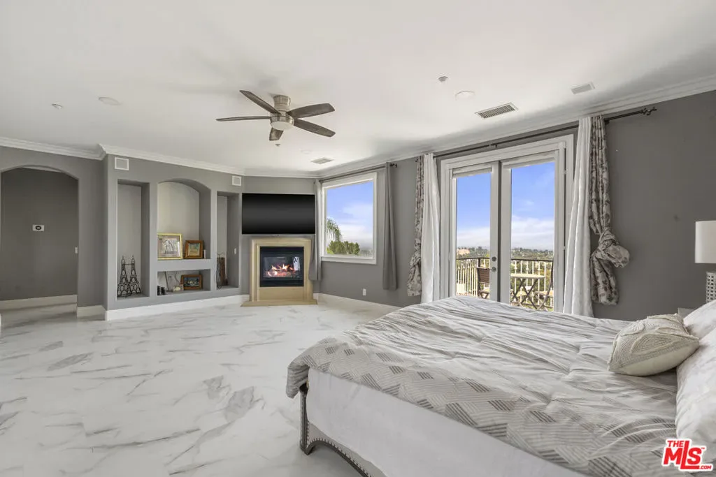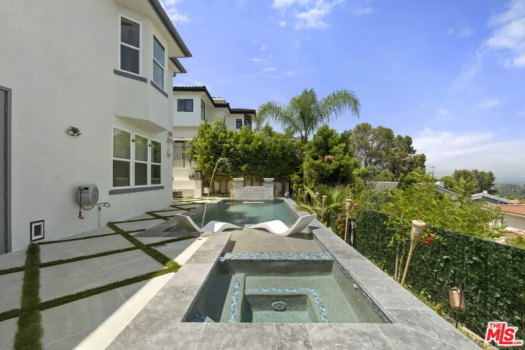 Nestled within the exclusive gated “Medina Estates” with unobstructed 180-degree views of the San Fernando Valley, welcome to this fully renovated, open, and bright 5bd/ 4.5ba, 3,591sf home situated on a 8,884sf lot atop a quiet cul-de-sac. The spacious primary bedroom features a cozy fireplace, a private balcony with stunning views, and ample closet with built-ins. Step outside to a charming courtyard featuring a full service outdoor kitchen & bar, large pool with integrated spa, outdoor speakers, multiple fire pits, and custom stone made built-in seating. Large 3 car garage with newly upgraded epoxy flooring. Rent covers the following utilities: Water, Electricity, Gas, HOA Fees, WiFi, Security Alarm, weekly Pool Service, and Gardening every other week.